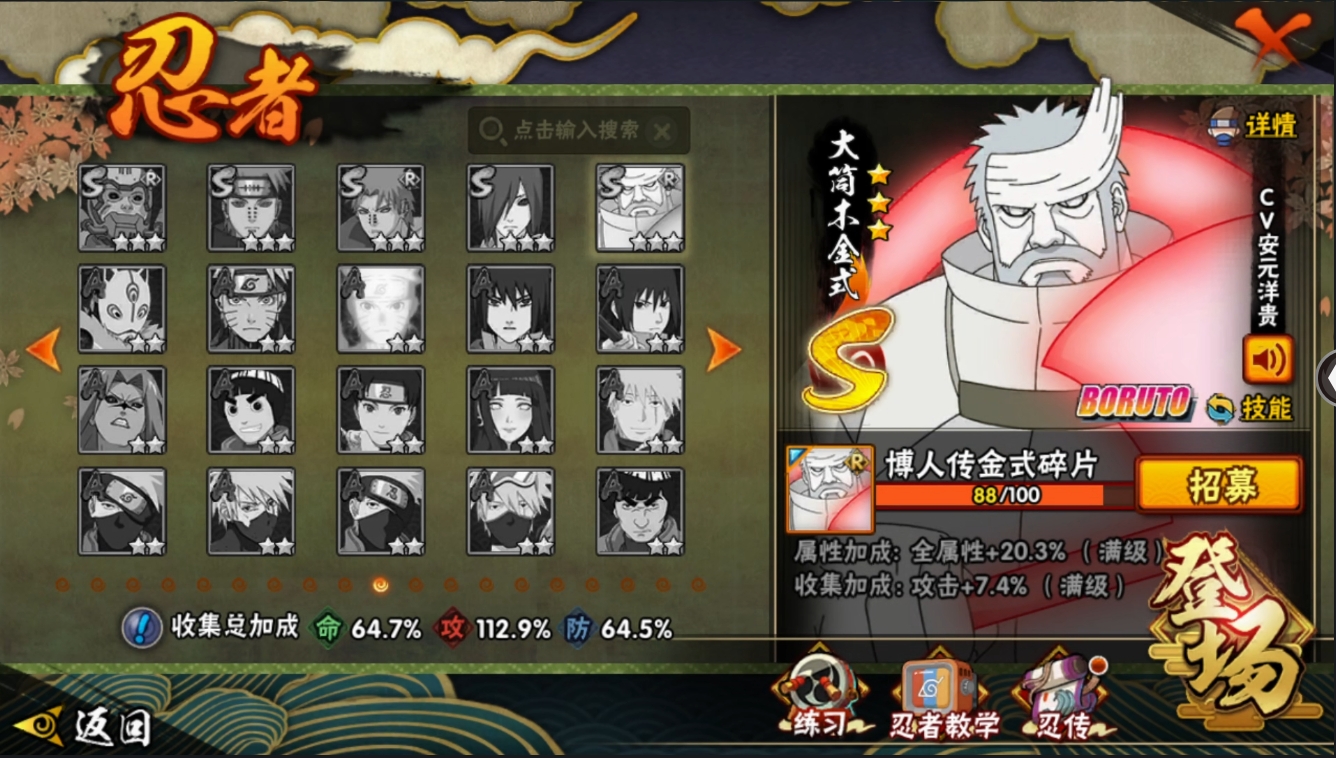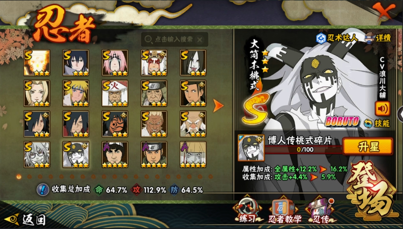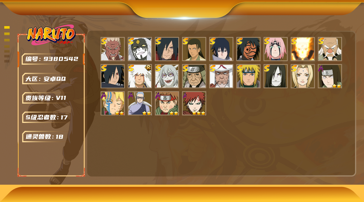 【编号27298可秒换绑】【店长推荐精品号!】17S级忍者数-25A级忍者数【S级忍者】:猿飞日斩「秽土转生」(3星),宇智波斑「秽土转生·解」(3星),大野木「忍界大战」(3星),春野樱「忍界大战」(3星),艾「忍界大战」(3星),宇智波斑「木叶创立」(3星),千手柱间「木叶创立」(3星),自来也「舞之豪杰」(3星),大蛇丸(3星),纲手(3星),猿飞日斩(3星),波风水门(3星),药师兜「仙人模式」(3星),神秘面具男「红夜之刃」(3星),漩涡鸣人「九喇嘛连结」(3星),宇智波佐助「永恒万花