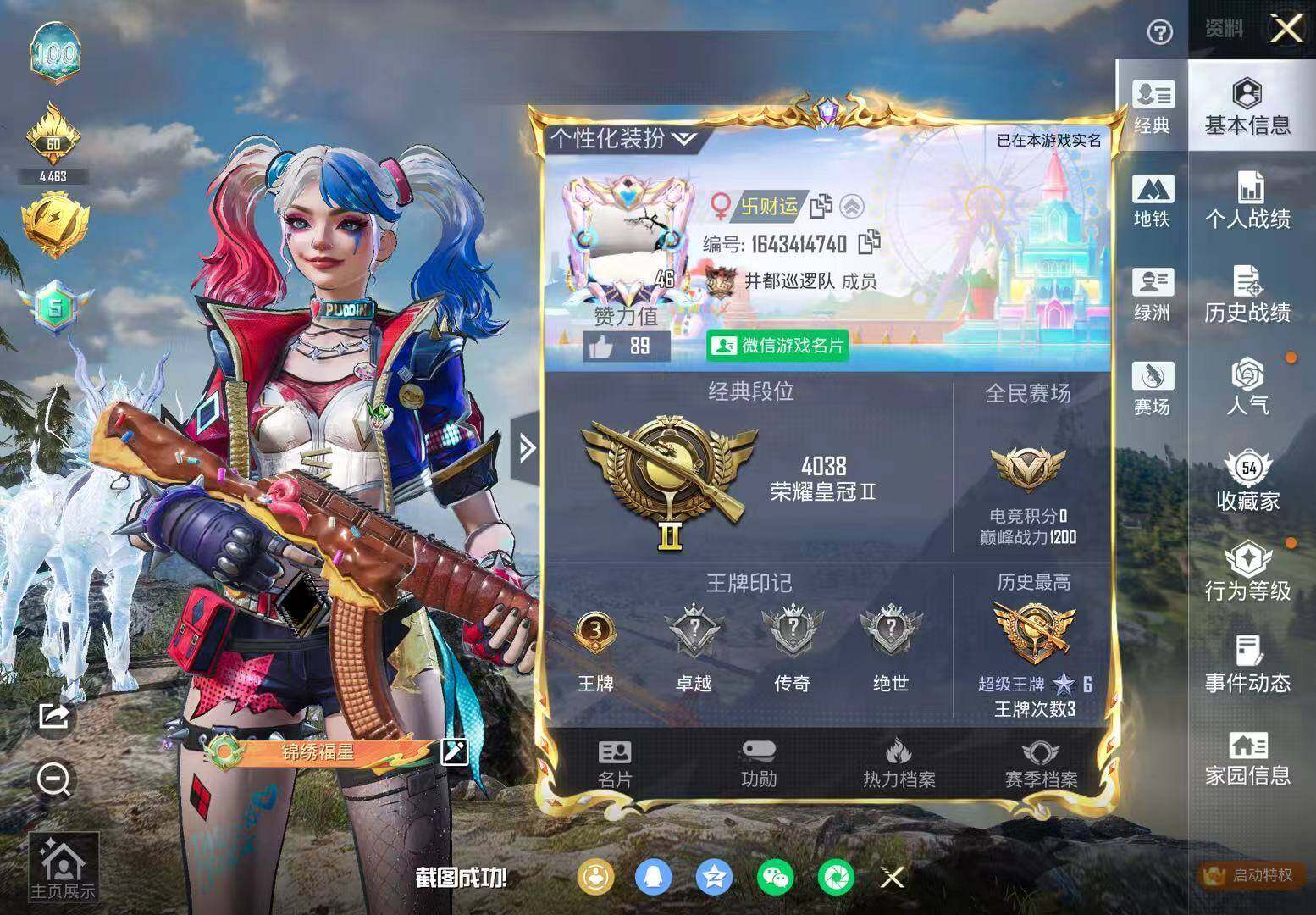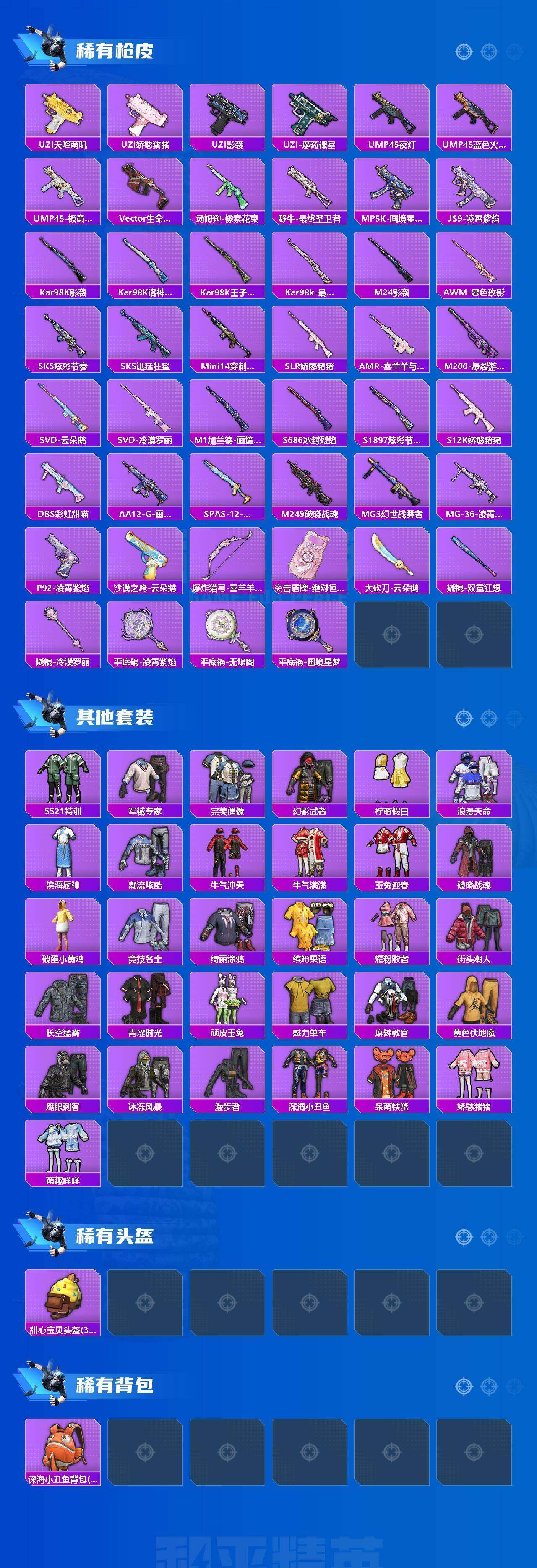 (1红套5粉套8粉枪2载具)帕修斯二级/浪漫天命/都市猎人/绝对恒星/狂魅哈莉/狂魇小丑/冷漠罗丽/异瞳寒姬/AKM甜心宝贝四级/UMP45萌骑冒险四级/Vector最终圣卫者三级/P90冷漠罗丽七级/Mk14爆裂游戏四级/Mk14福马献瑞一级/M249绝对恒星四级/DP28豹影疾电五级/最终圣卫者摩托车/冰绡玉鳞/没战神框/HP6983-3粉色飞行器-40729热力值-3王牌印记-78套装-129枪皮
