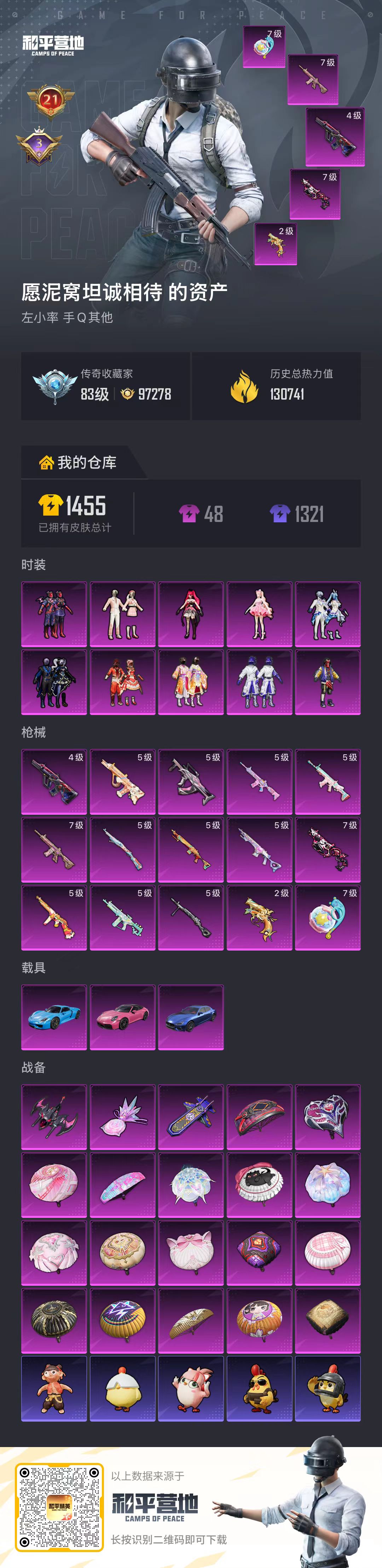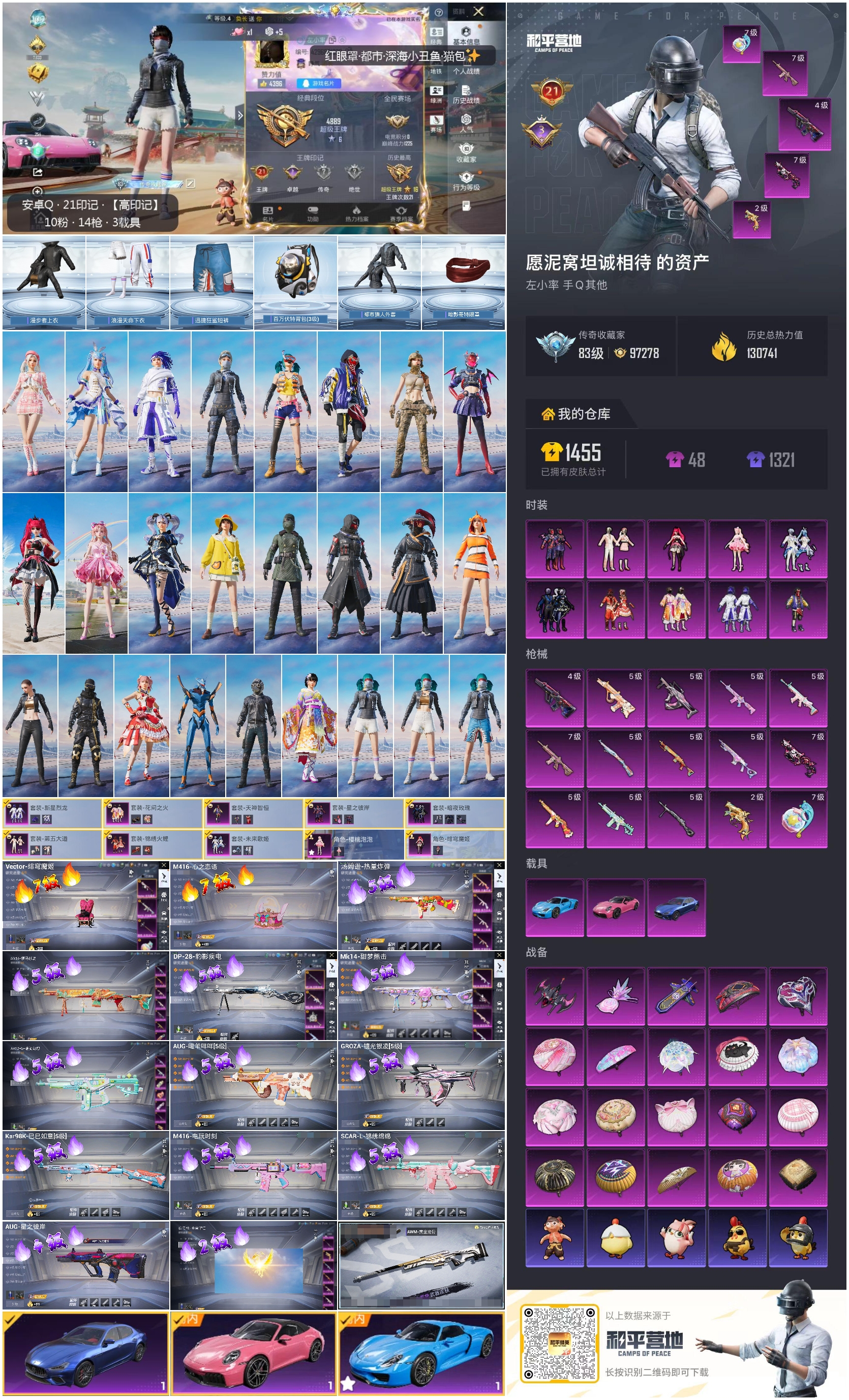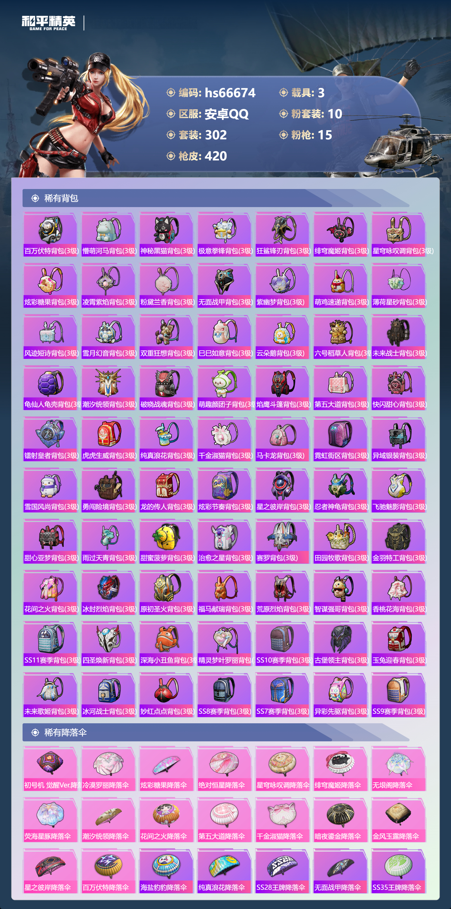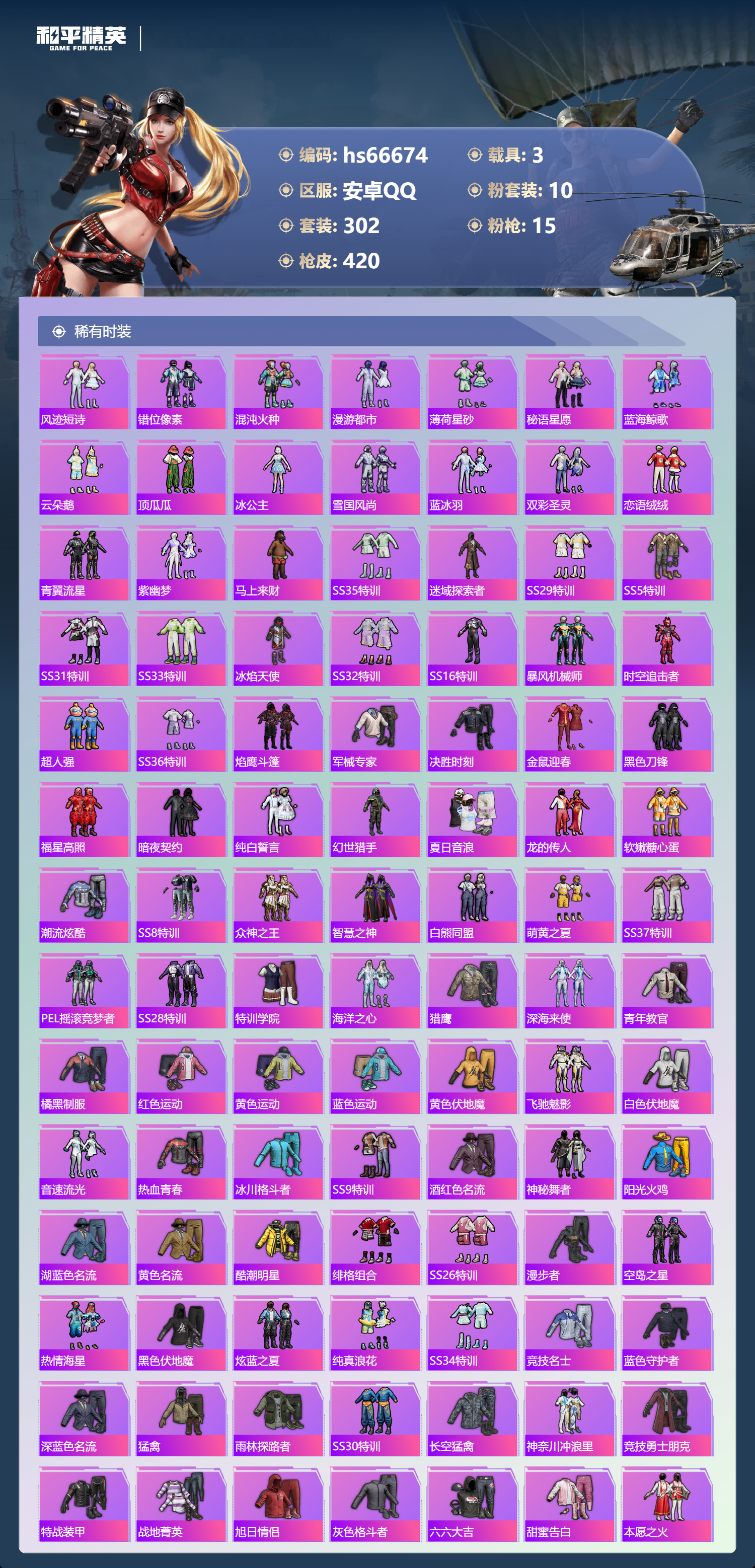 hs66674安卓手Q-21王牌印记-10粉装-15特效枪-3载具-热力值-302套装-420枪皮-3卓越印记