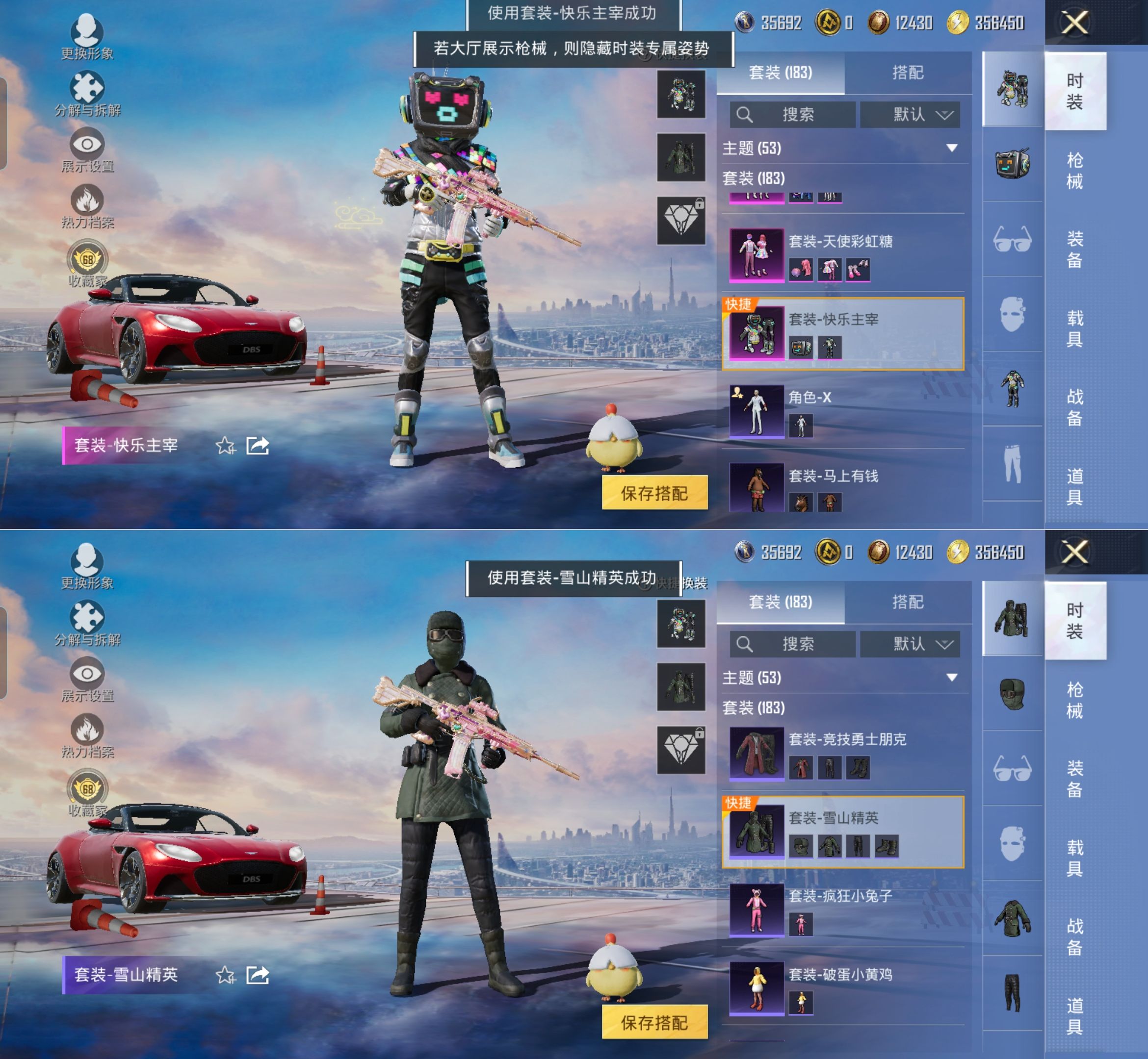 1载具-10粉装-5特效枪-183套装-226枪皮-5王牌印记-卓越王牌10星-73735热力值