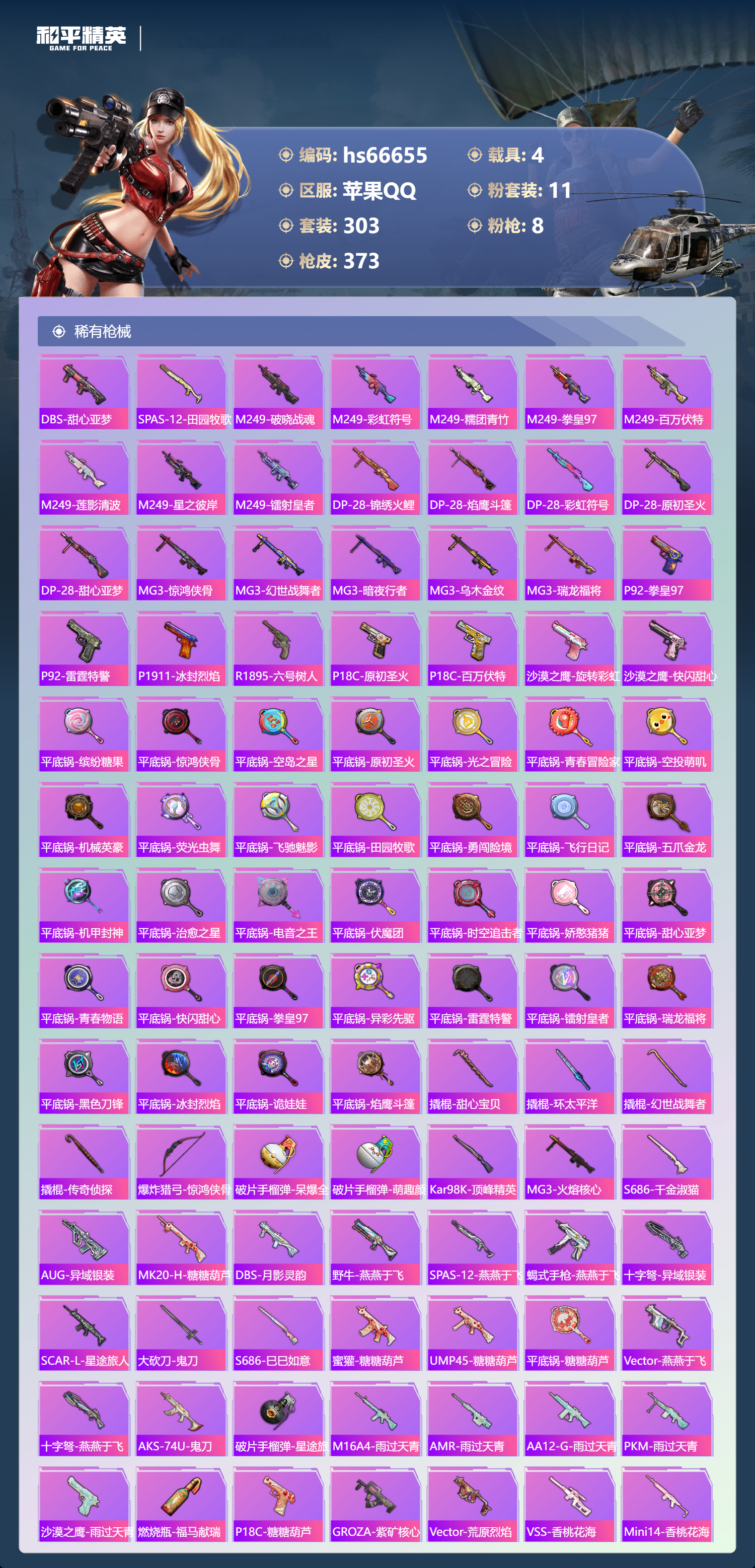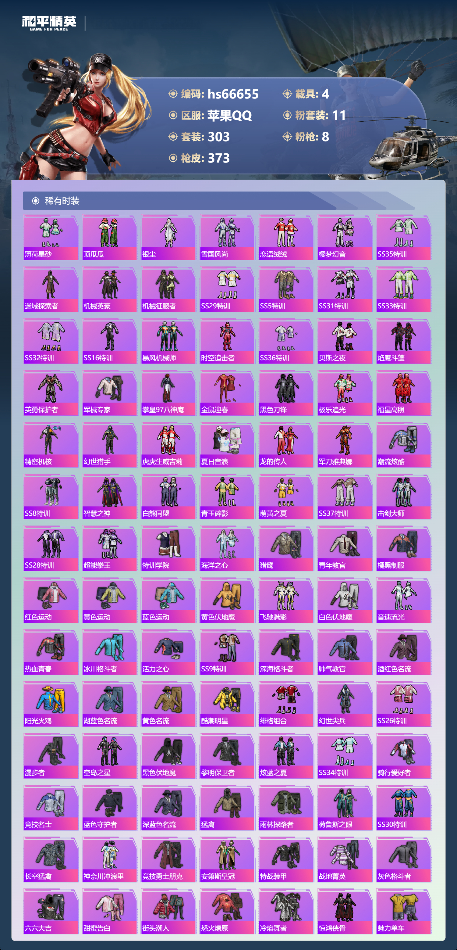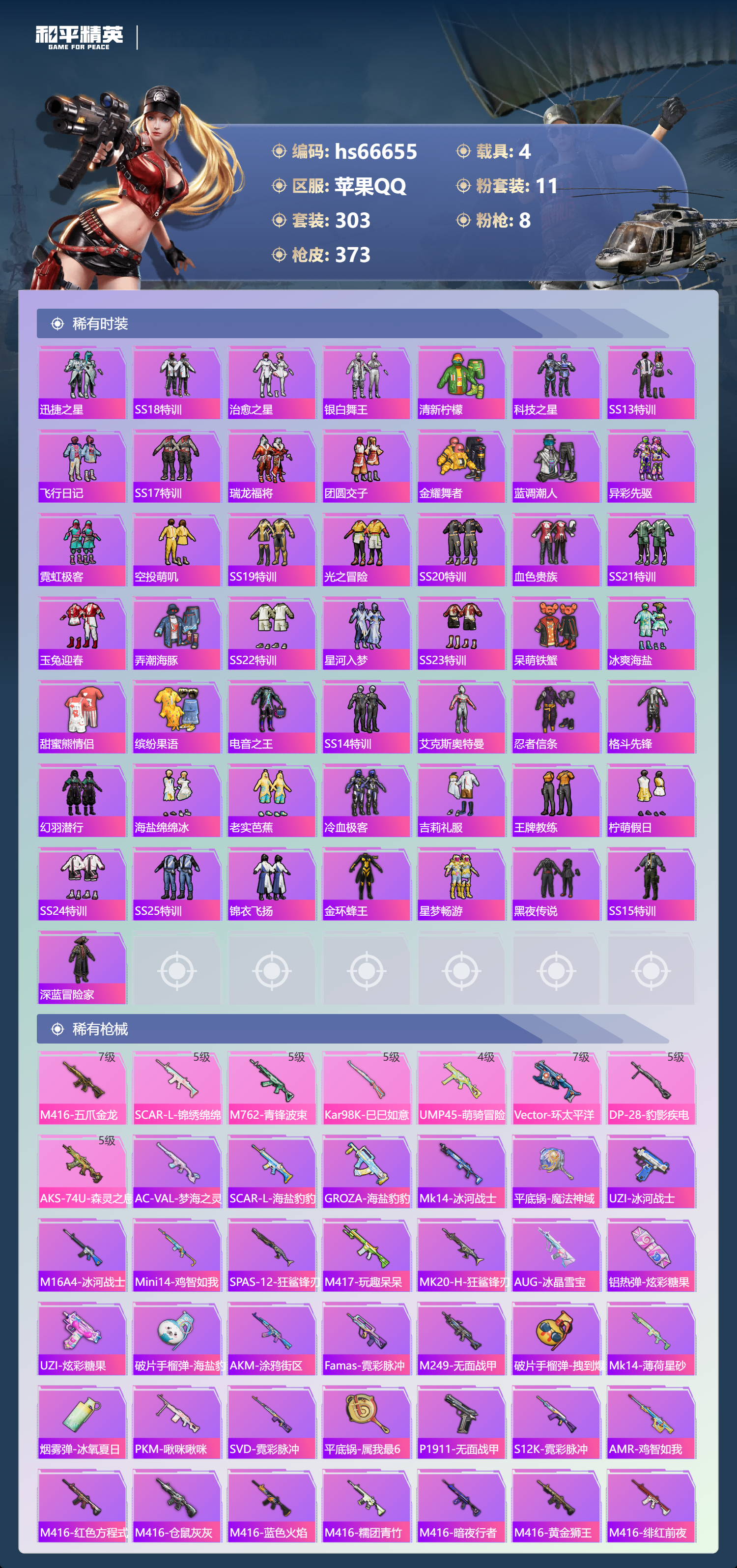 苹果手Q-24王牌印记-11粉装-8特效枪-4载具-热力值-30