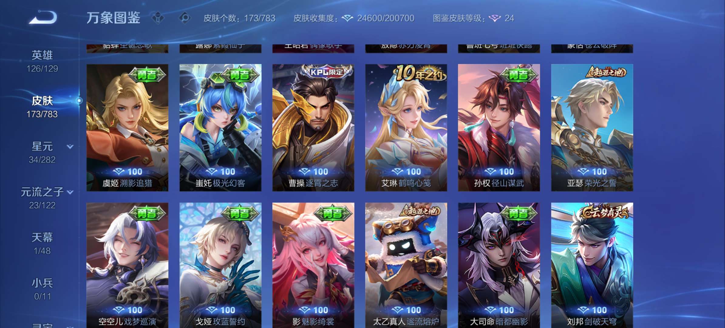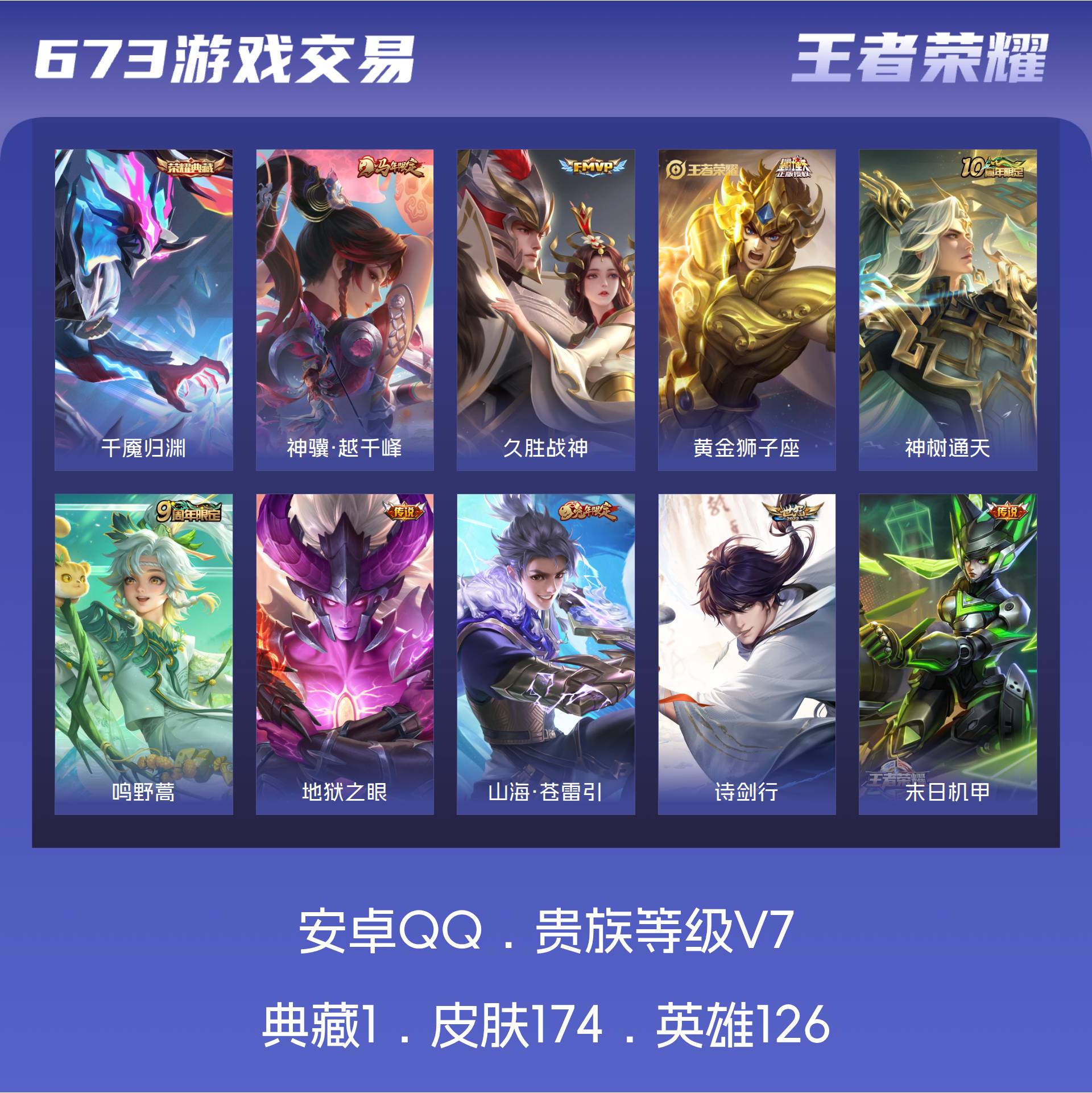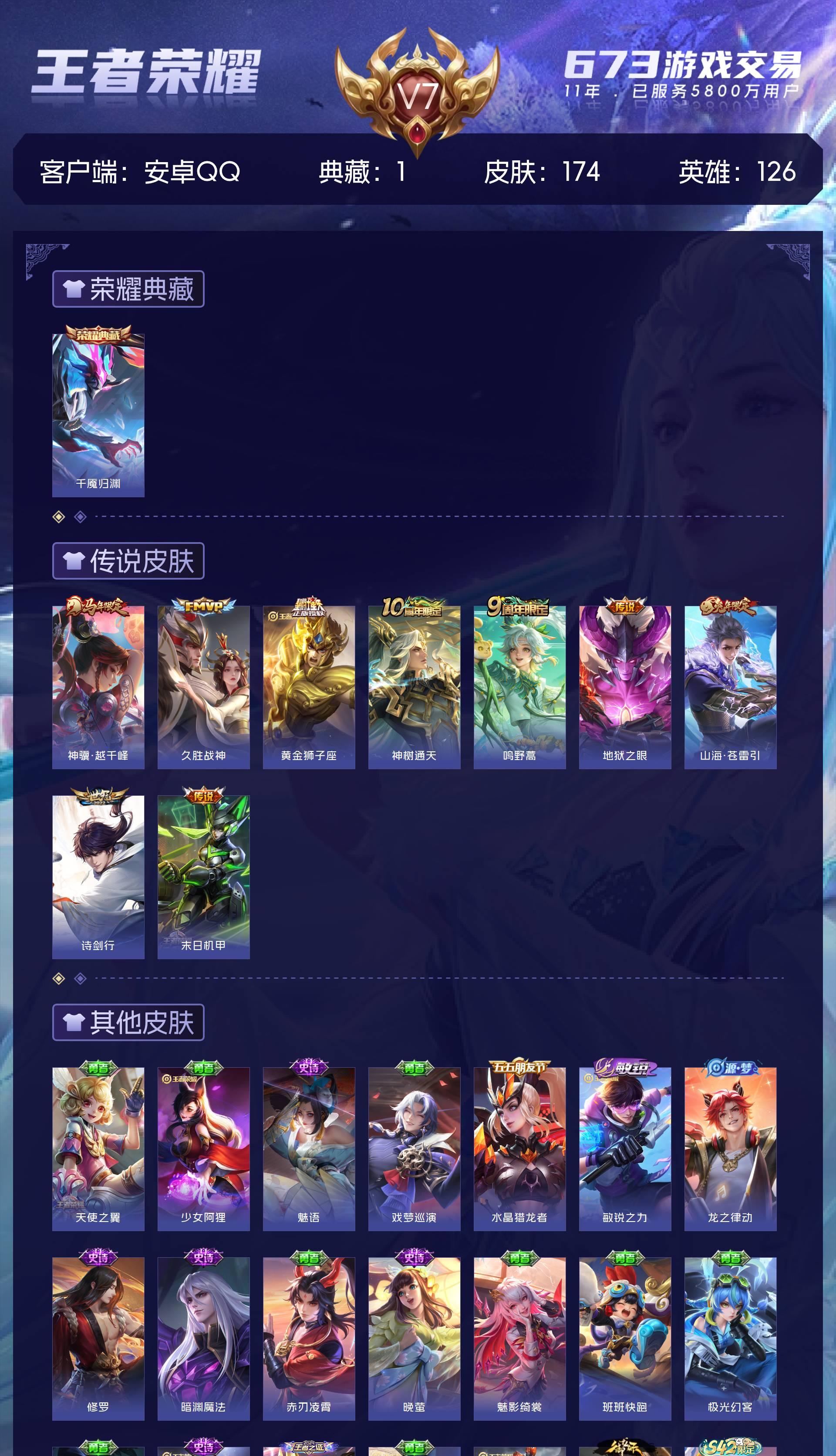 V7 皮肤174 英雄126 传奇王者 荣耀典藏1 传说9