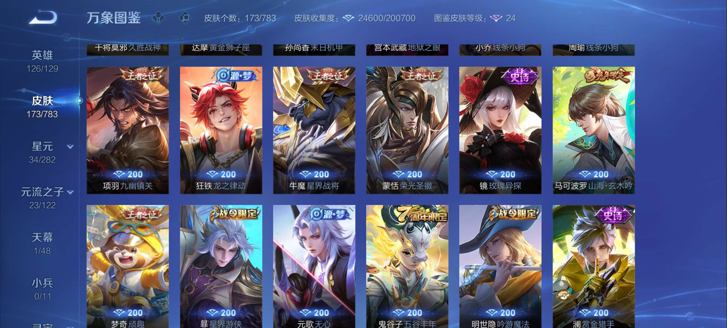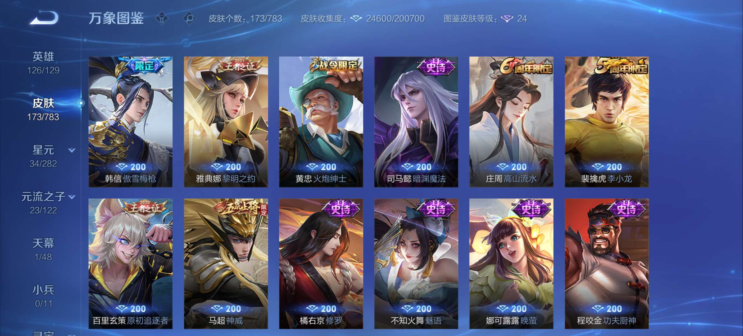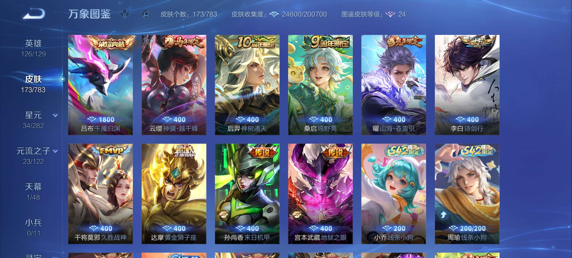 V7 皮肤174 英雄126 传奇王者 荣耀典藏1 传说9