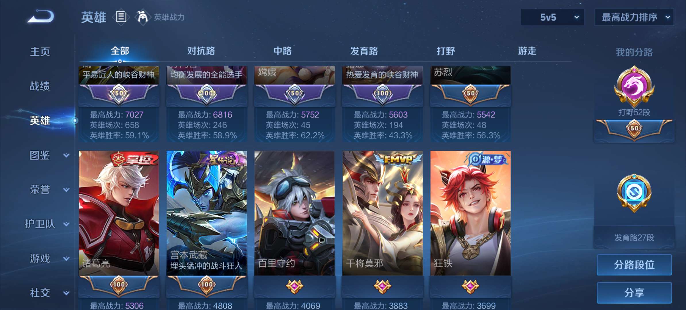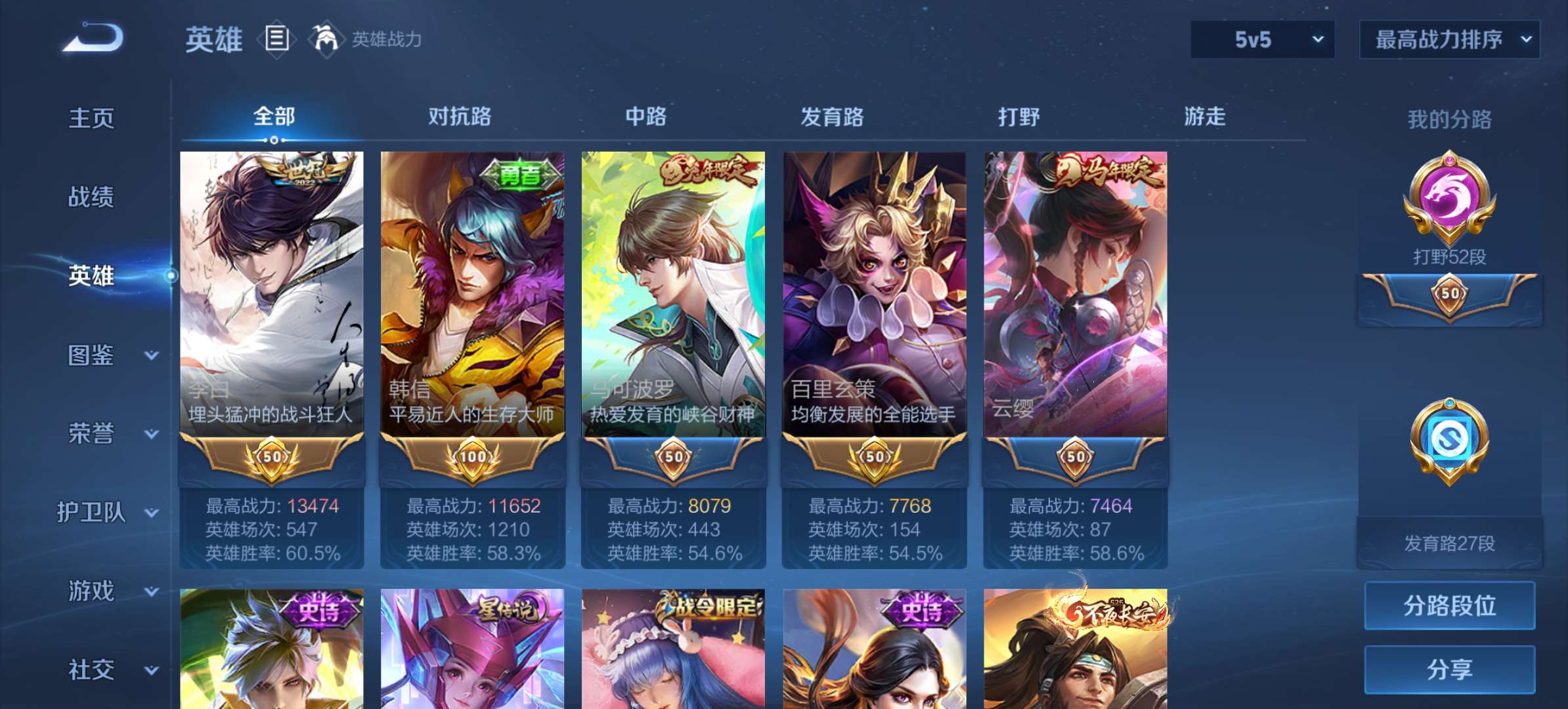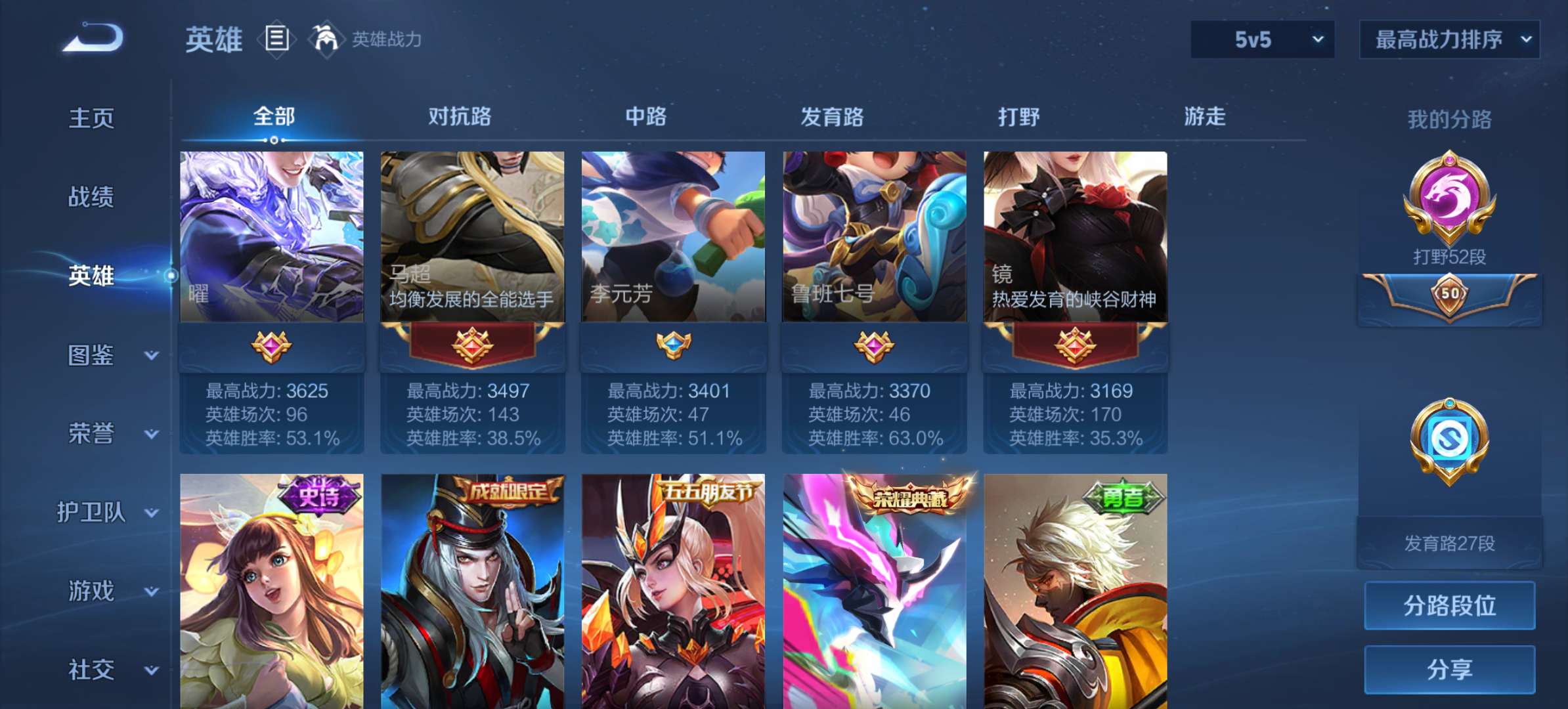 现53段打野。百星王者。历史巅峰2151。传说史诗多。超值账号。安全有二次