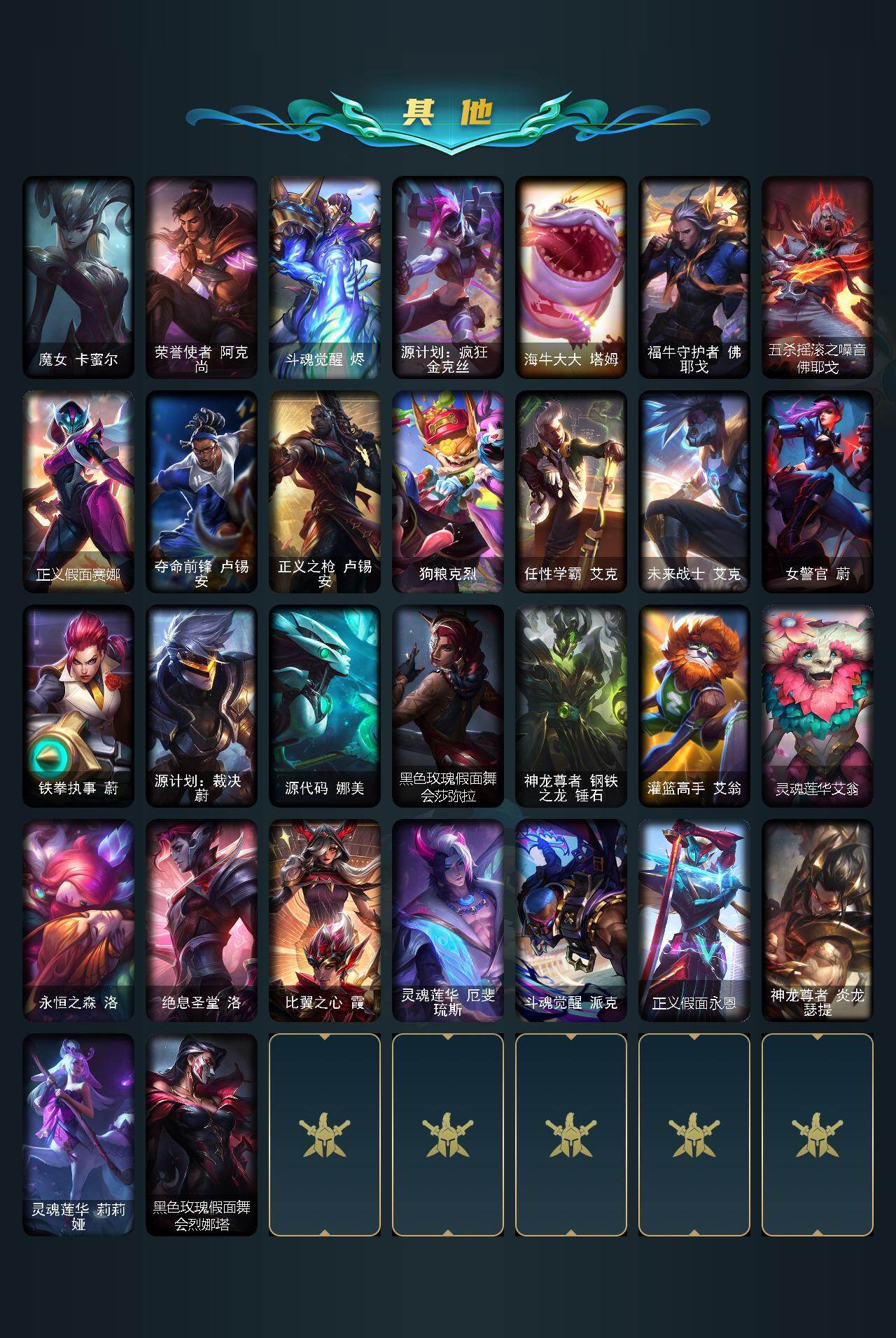 未定级段位-172英雄-496皮肤-123炫彩-3终极-20神话-68限定-57传说-84史诗