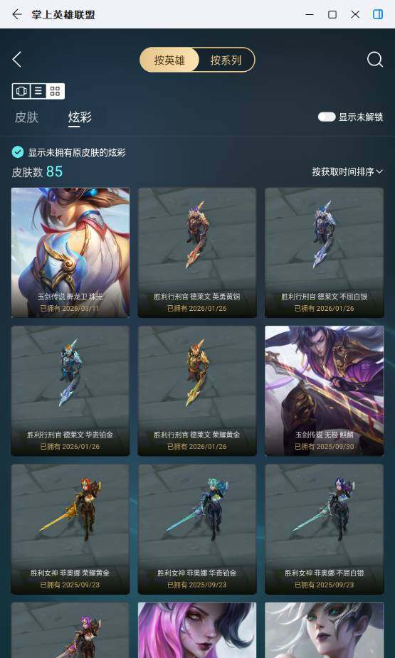 未定级段位-172英雄-342皮肤-85炫彩-2终极-3神话-48限定-40传说-8