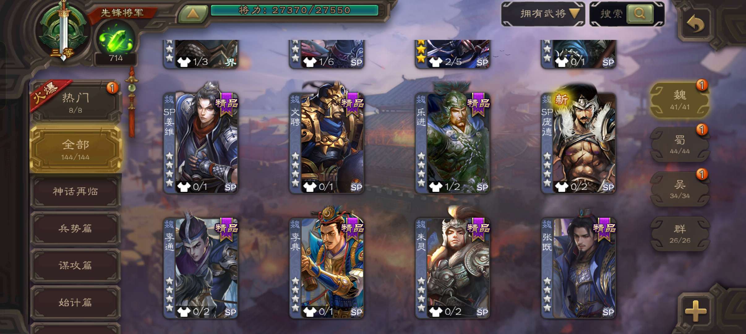 8万羽毛,天工张既,大宝界徐盛界李儒沙摩柯界黄忠马云騄5史诗先锋,关银屏势陈到谋高顺界孙权144将