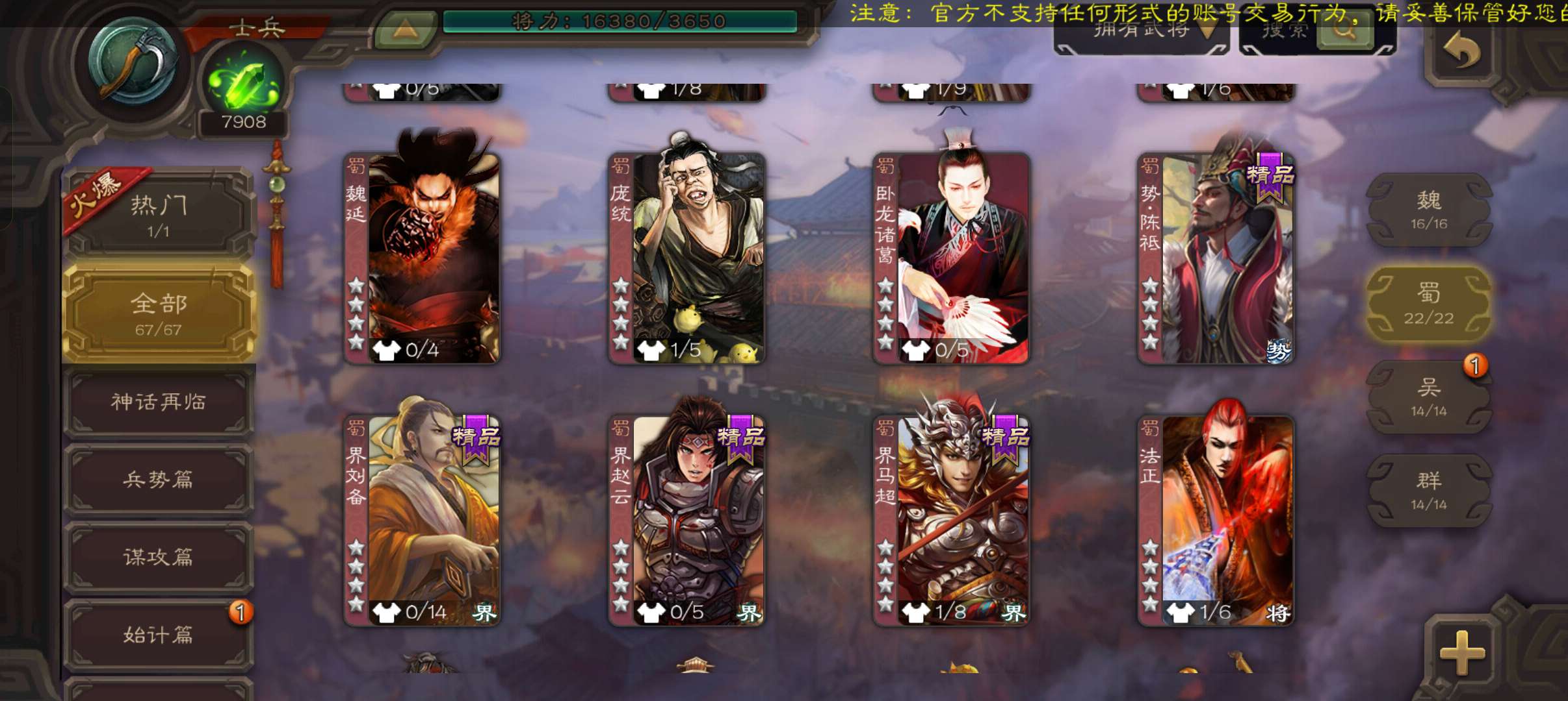 超级兵,7900魂5.5万毛(半价回廊界左慈),动王粲神刘备界于禁马云騄,甘夫人关银屏67将123令