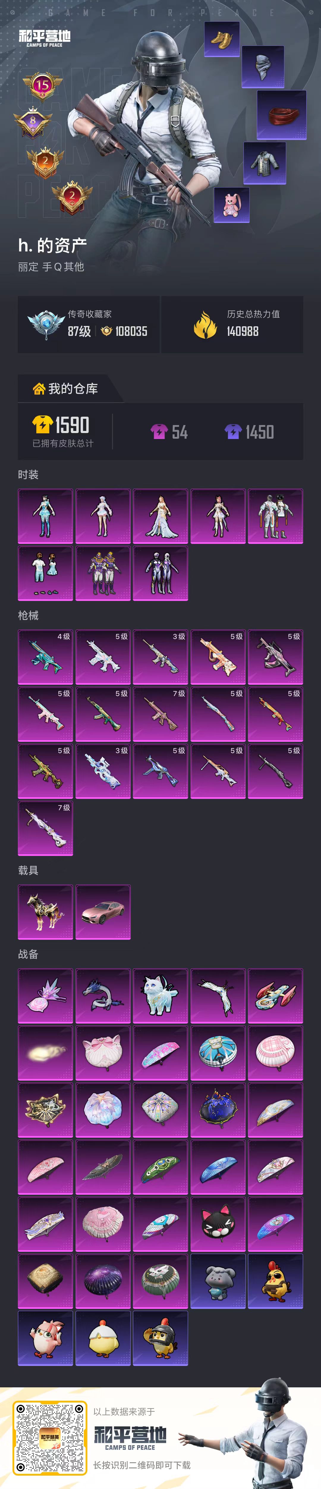 15王牌印记-8粉装-16特效枪-2载具-热力值-333套装-427枪皮-8卓越印记-2传奇印记