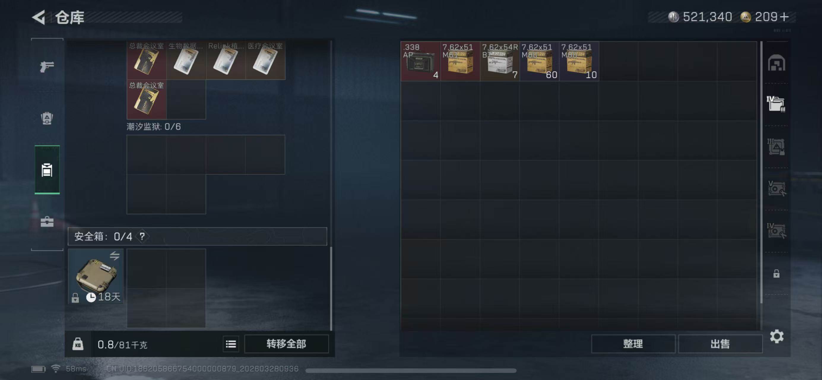 【SJ1261】行动等级:52 总资产:28M 哈夫币:52.1W 干员皮肤:凌霄戍卫 安全箱:进阶安全箱4(2x2) 万金泪冠捆绑包,锦绣捆绑包 三角币:33 三角券:176