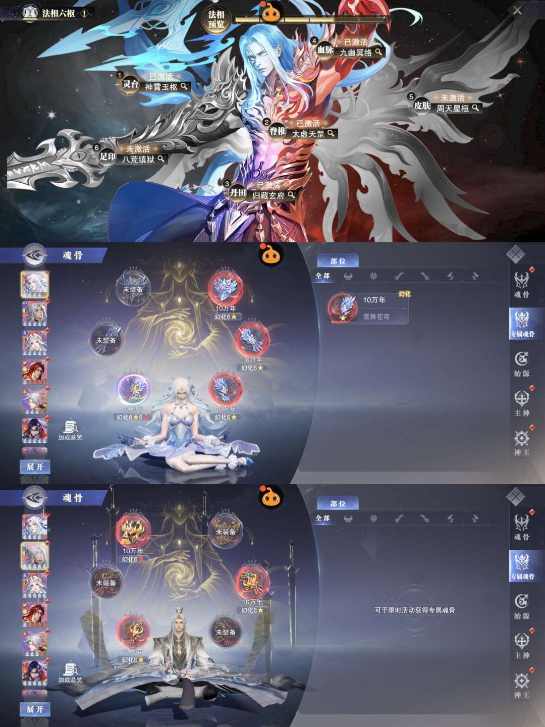 400亿战力。77级。红5神雪24sp。514抽。彩5大荣。彩5剑仙。业火神诏双神。黑皮神雪。孤山