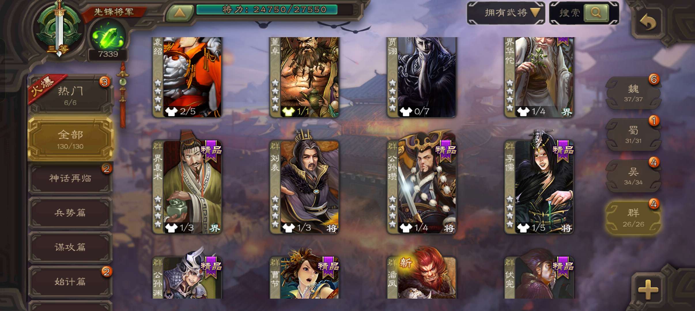 史诗武将数量: