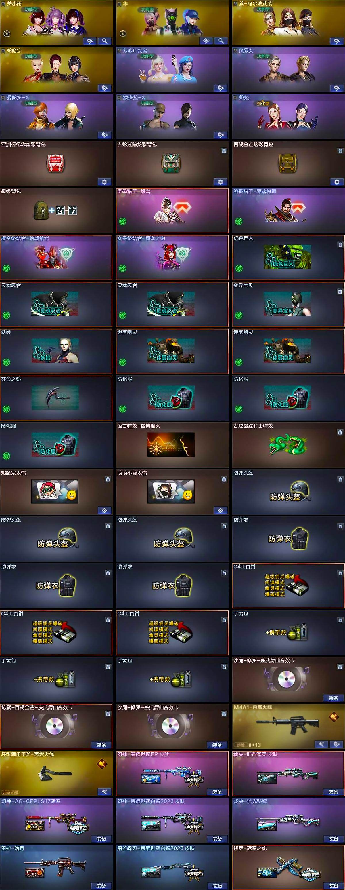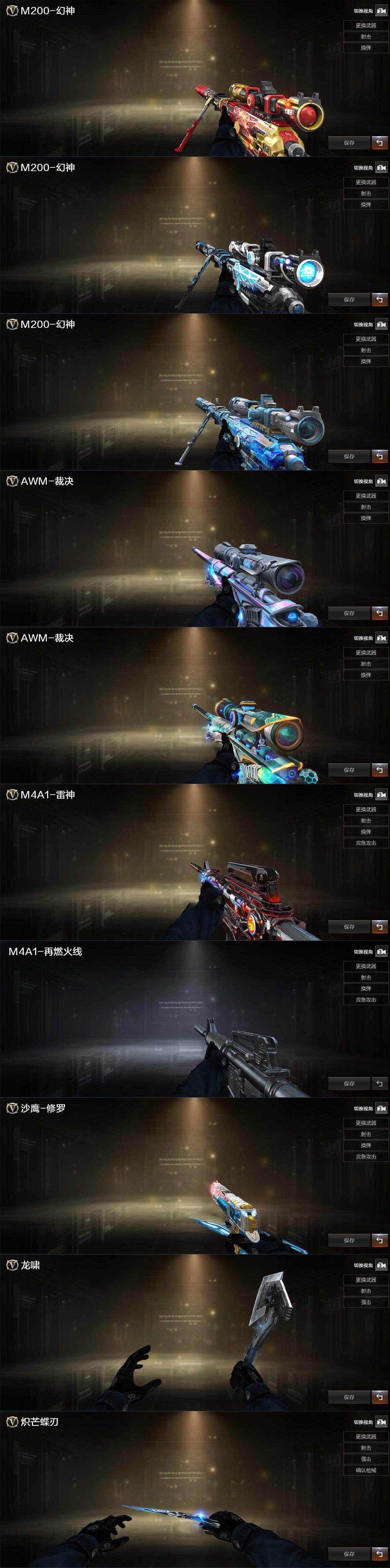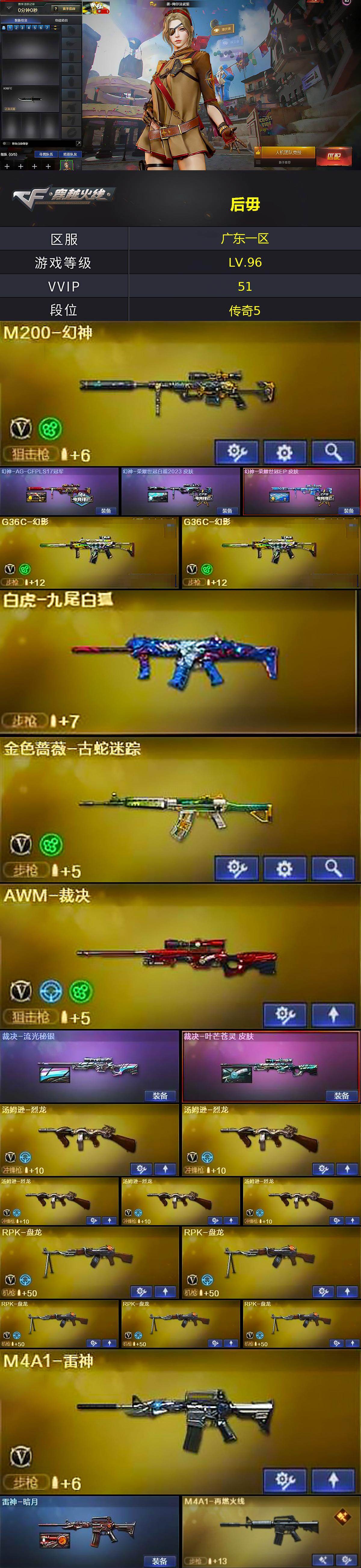 【热门武器】:G36C-幻影*2,M200-幻神,金色蔷薇-古蛇迷踪,修罗-古蛇迷踪,汤姆逊-烈龙*5,RPK-盘龙*5,沙鹰-修罗,炽芒蝶刃-荣耀世冠白鲨2023 皮肤
