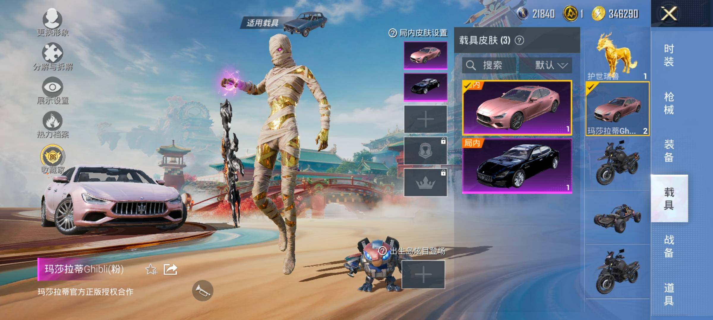 【3载具】 玛莎拉蒂Q蓝色 玛莎拉蒂粉色 护世瑞兽