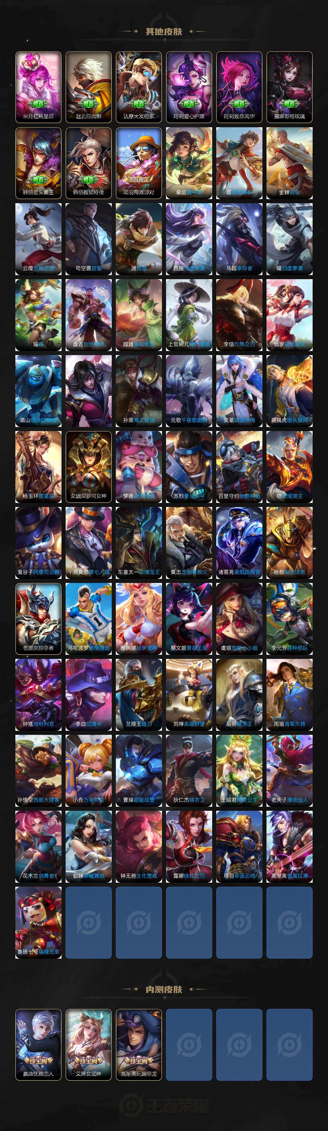 【传说皮肤】:狄仁杰神骥赴朔漠,后羿神树通天,司马懿九山相柳,公孙离云诺千山,女娲愿照千秋盛,澜愿照九州拓,虞姬愿照岁时盈