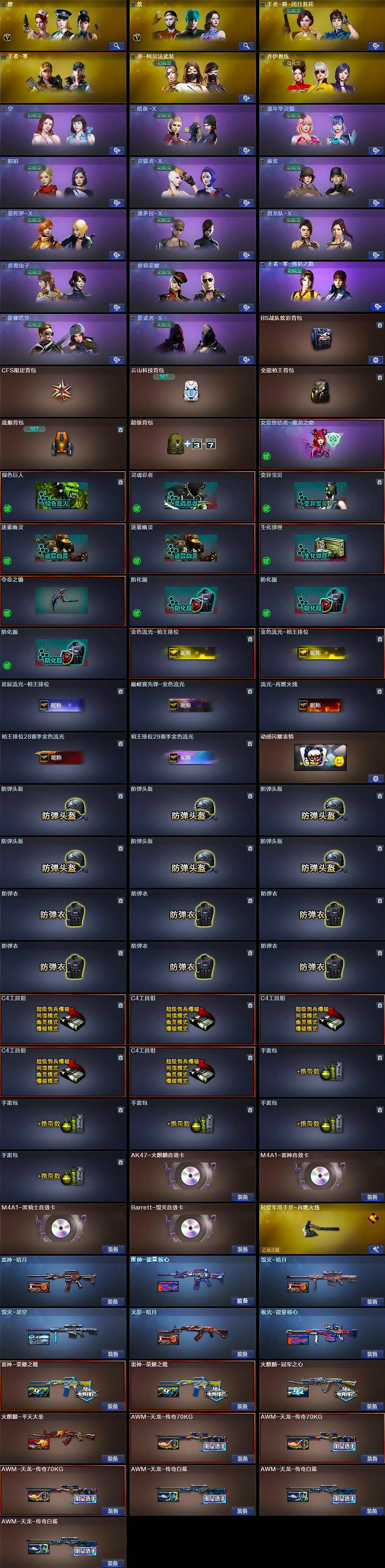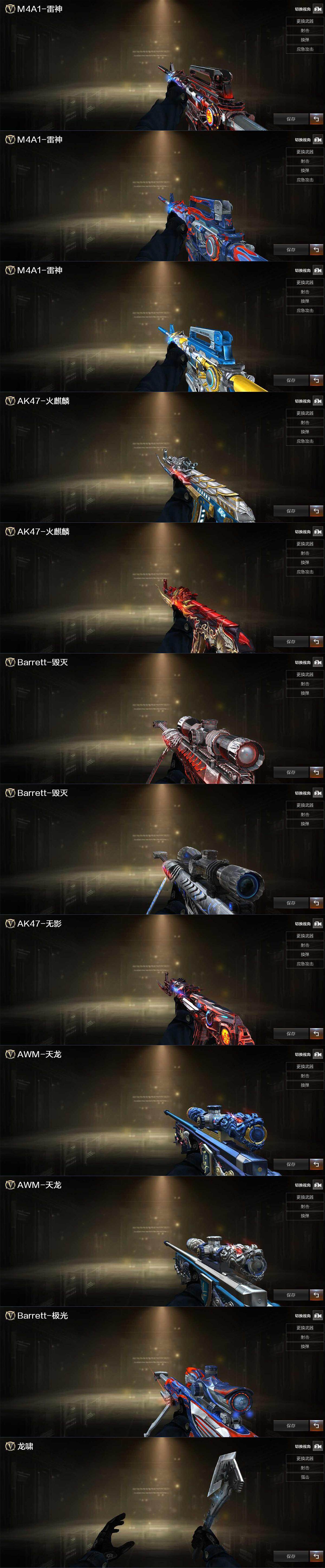 【音效卡】:AK47-火麒麟音效卡,M4A1-雷神音效卡,M4A1-黑骑士音效卡,Barrett-毁灭音效卡
