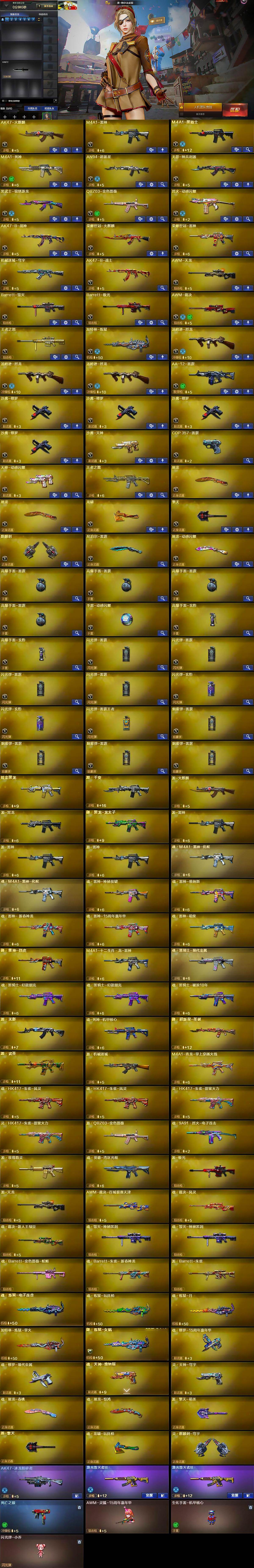 【热门武器】:QBZ03-金色蔷薇,死亡之眼,荣耀世冠-火麒麟,荣耀世冠-雷神,M4A1-黑骑士,汤姆逊-烈龙*3,加特林-炼狱,沙鹰-修罗*4