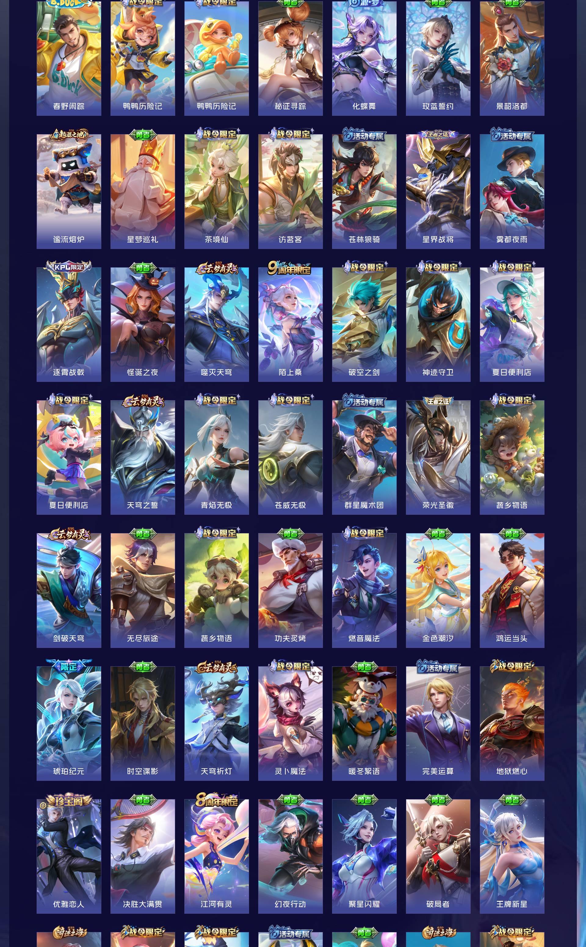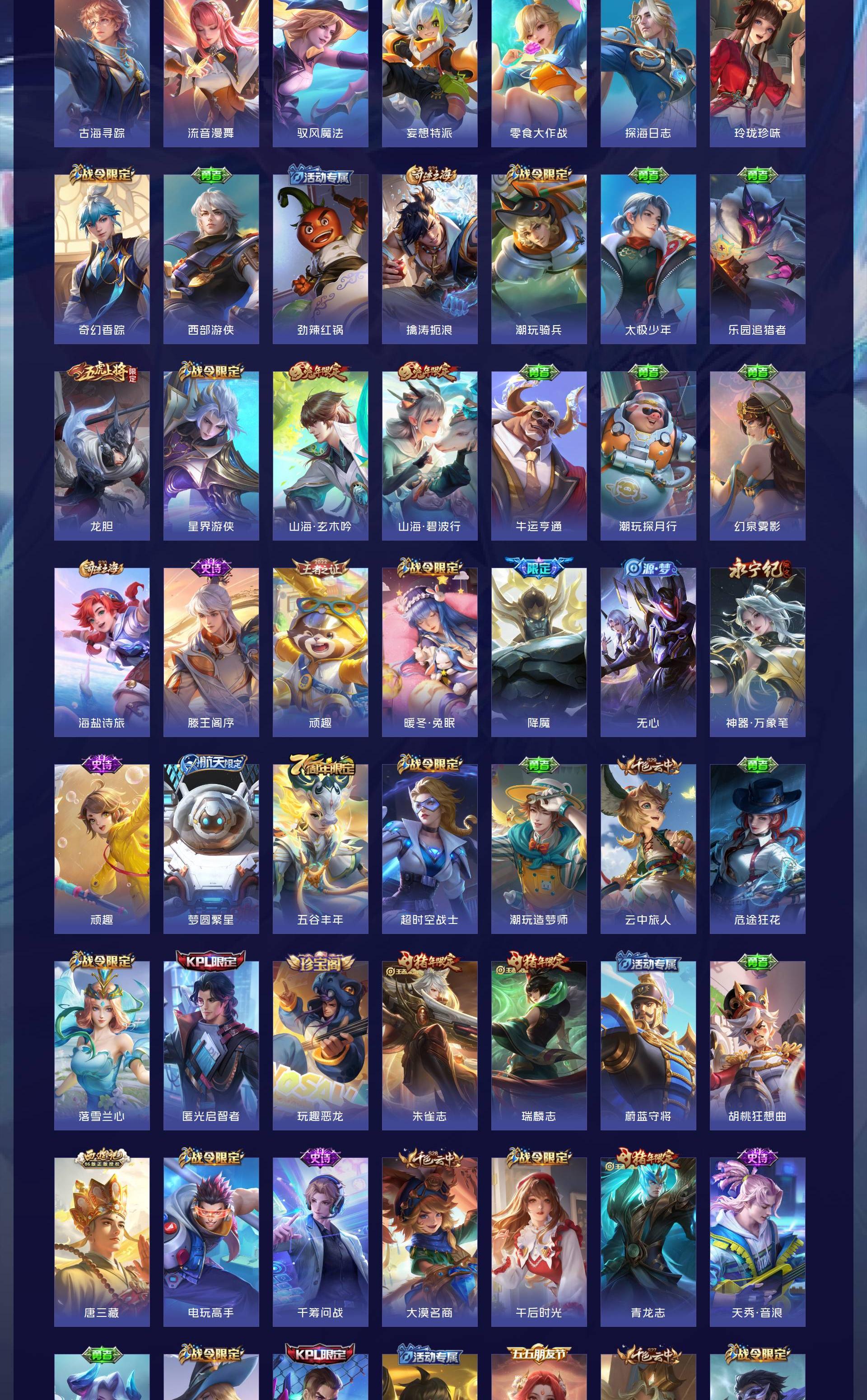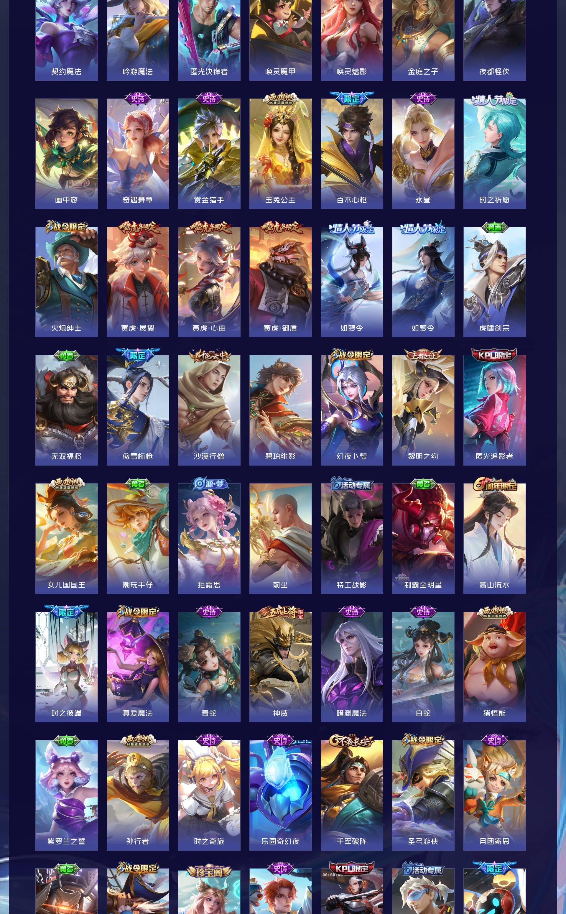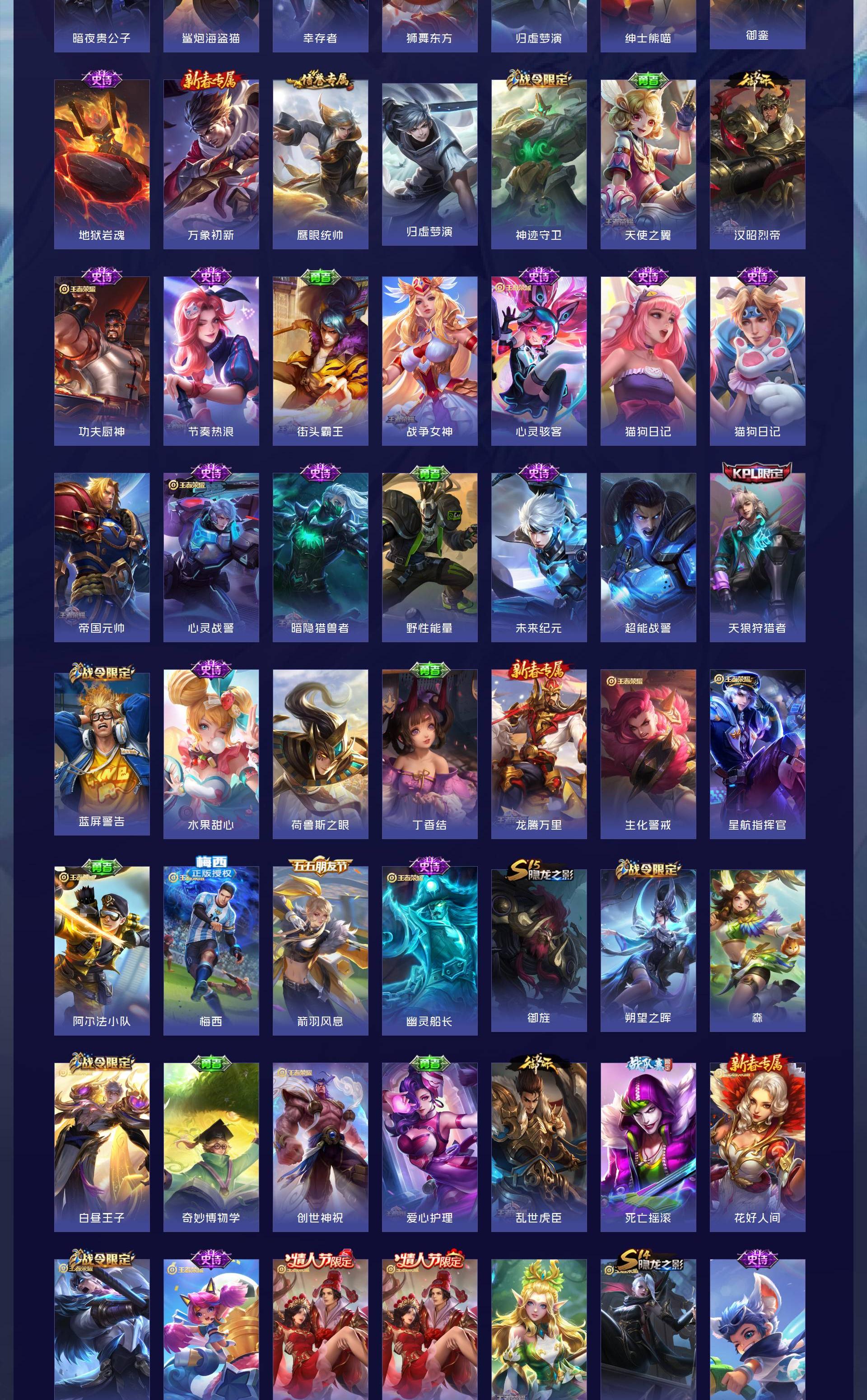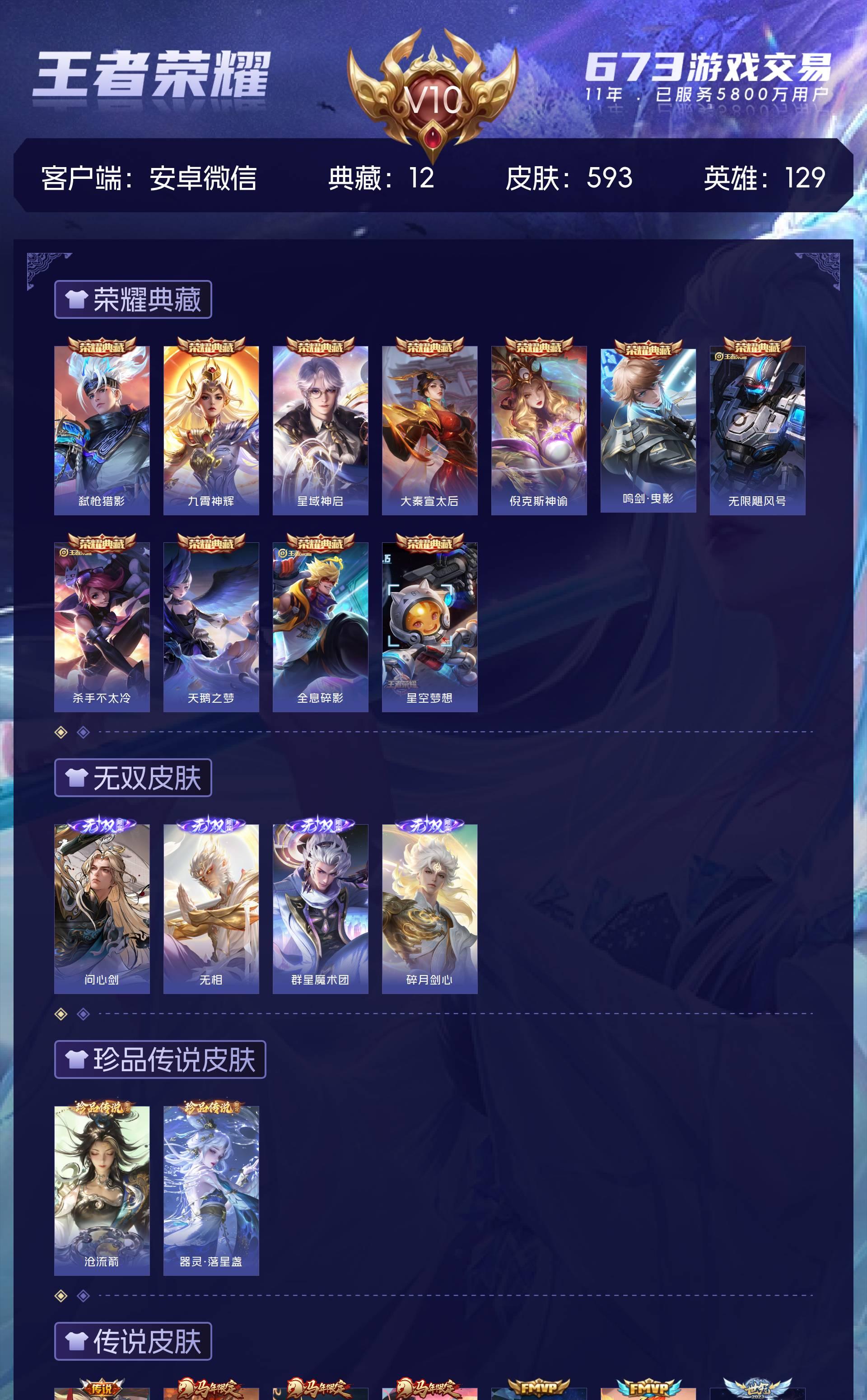 V10 皮肤593 英雄129 荣耀王者 荣耀典藏12 无双皮肤4 珍品传说2 星传说18 传说81