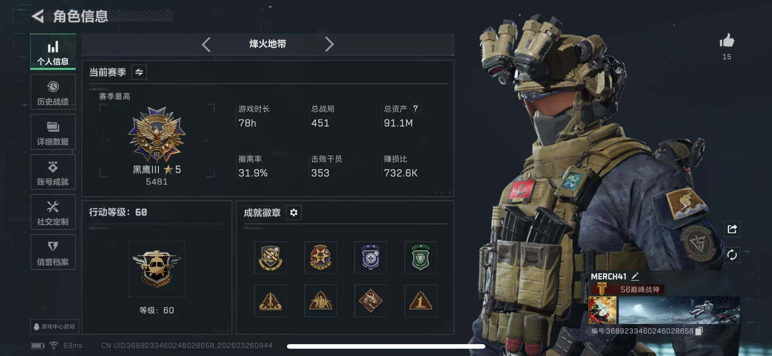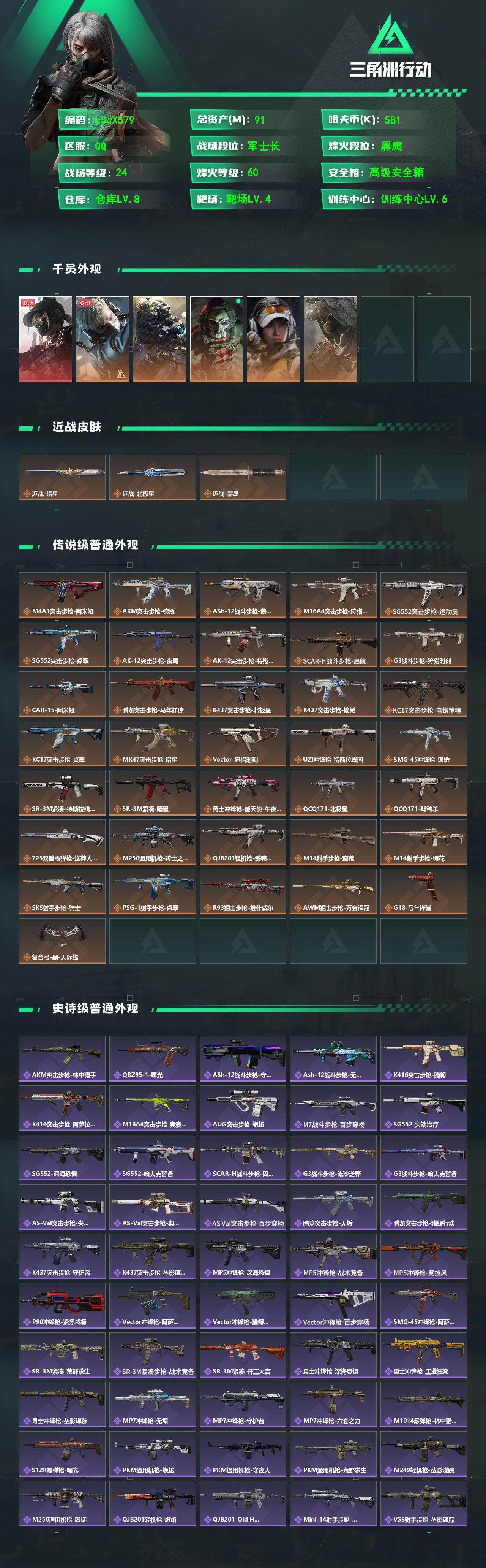 【特价出售/店主推荐】91m总资产-581k哈夫币-60烽火等级-黑鹰-24战场等级-军士长【干员外观】:露娜-黑·天际线,蜂医-送葬人·无题密令,无名-夜鹰,红狼-电锯惊魂,露娜-金牌射手,乌鲁鲁-荒原猎手【近战皮肤】:近战-暗星,近战-北极星,近战-黑鹰【传说外观】:M4A1突击步枪-阿米娅,AKM突击步枪-锦绣,ASh-12战斗步枪-鹅鸭杀,M16A4突击步枪-狩猎时刻,SG552突击步枪-运动员,SG552突击步枪-点翠,AK-12突击步枪-夜鹰,AK-12突击步枪-特斯拉线圈,SCAR