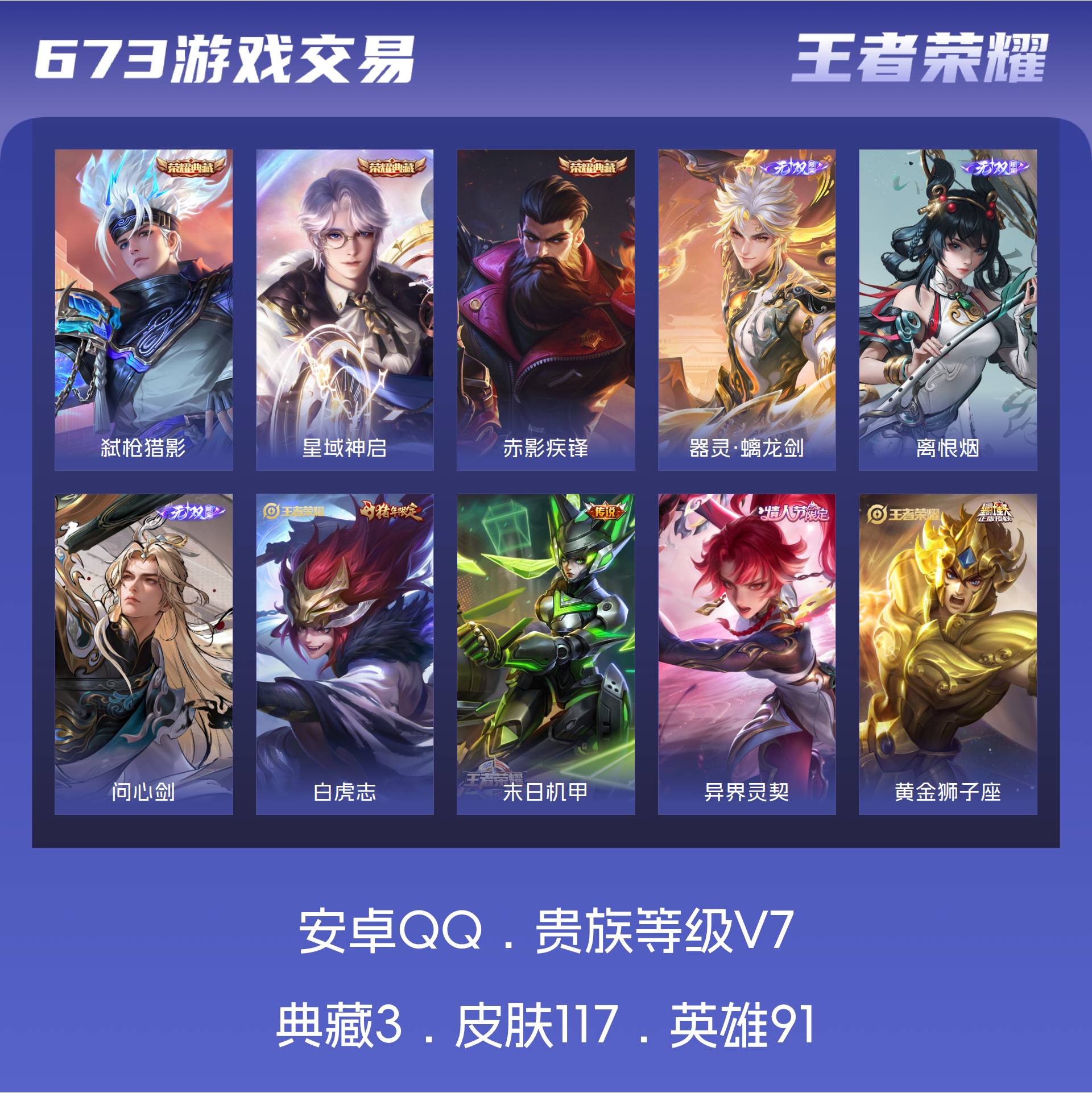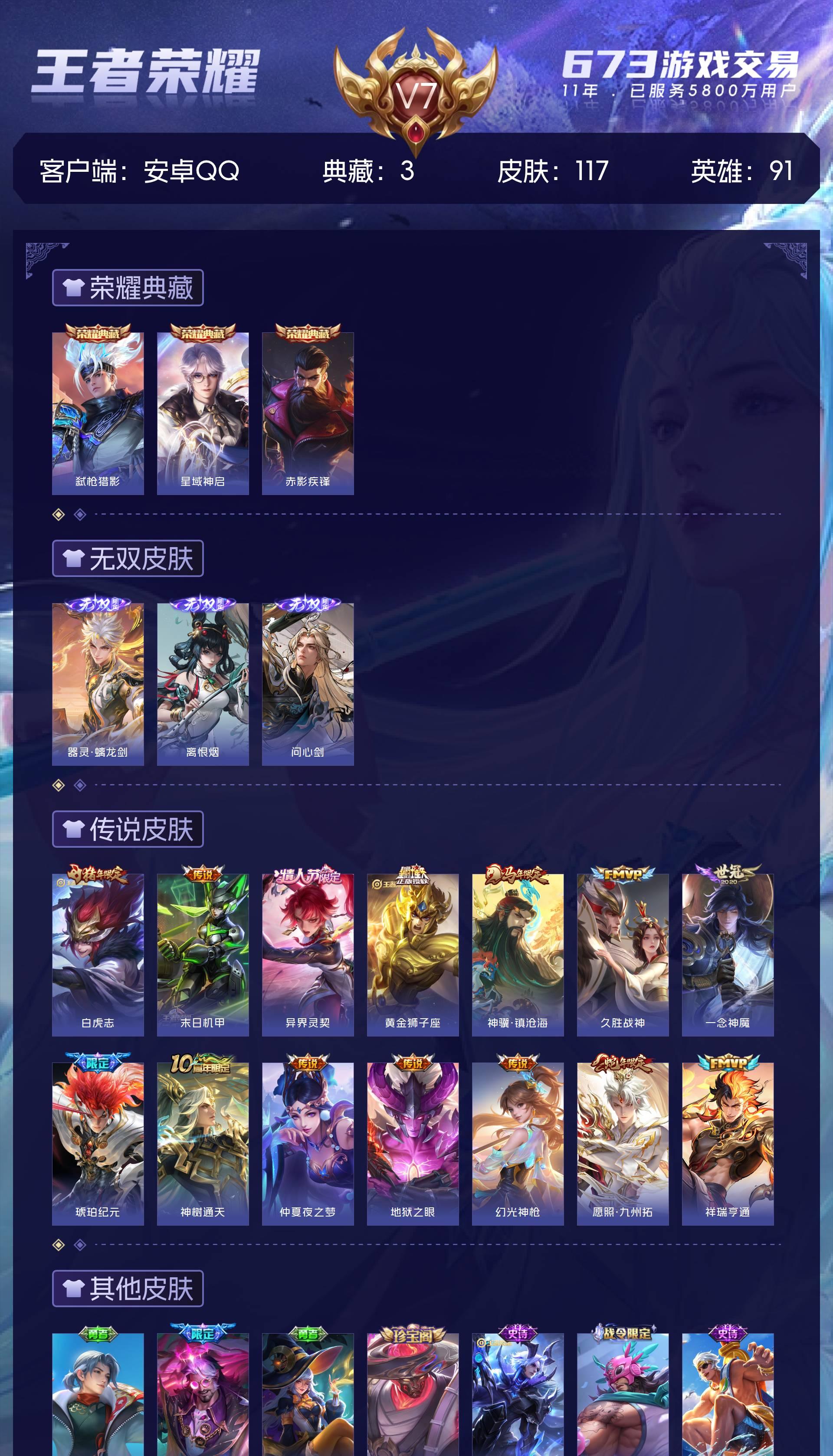 V7 皮肤117 英雄91 传奇王者 荣耀典藏3 无双皮肤3 星传说3 传说14