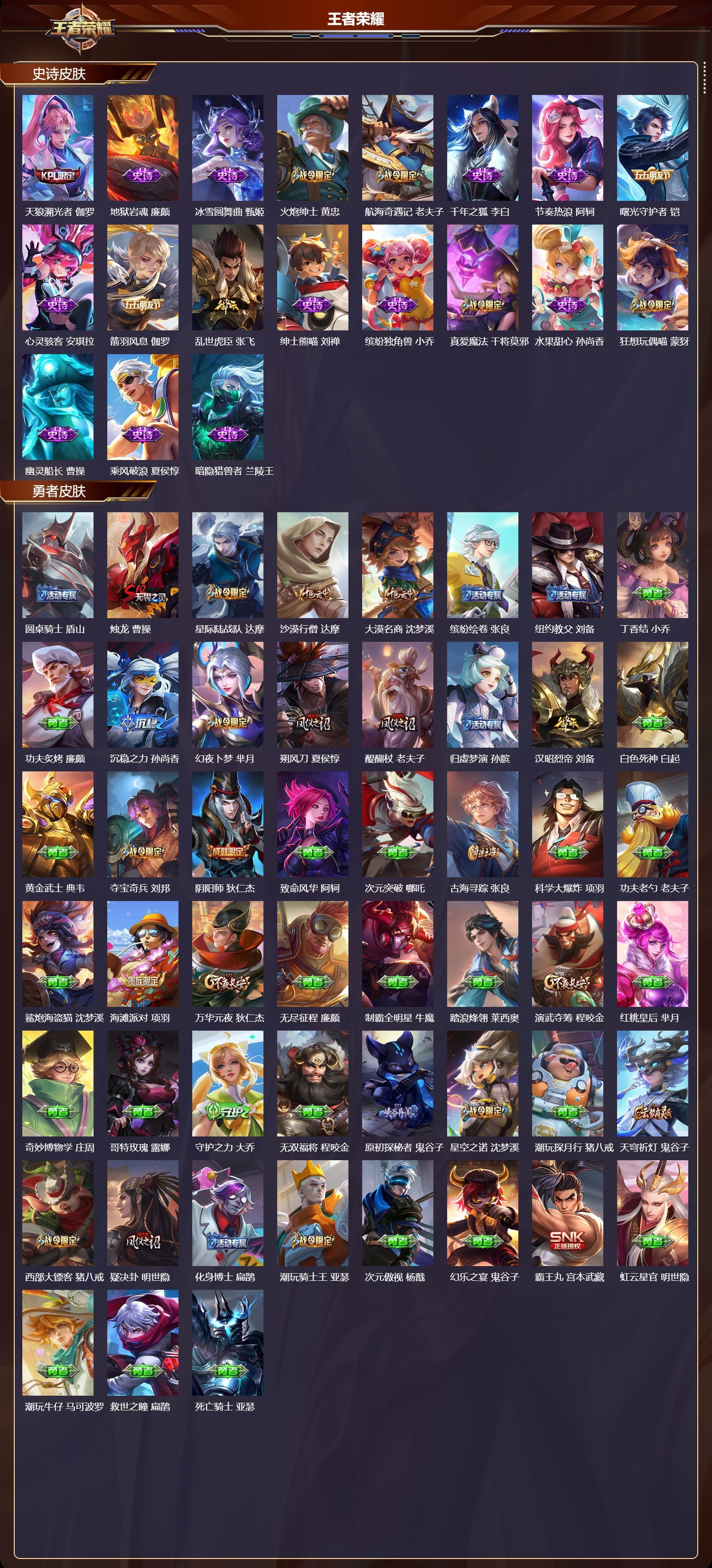 安卓QQ/永恒钻石/255皮肤/127英雄/2典藏/0珍品无双/0无双/1珍品传说/8传说/78史诗