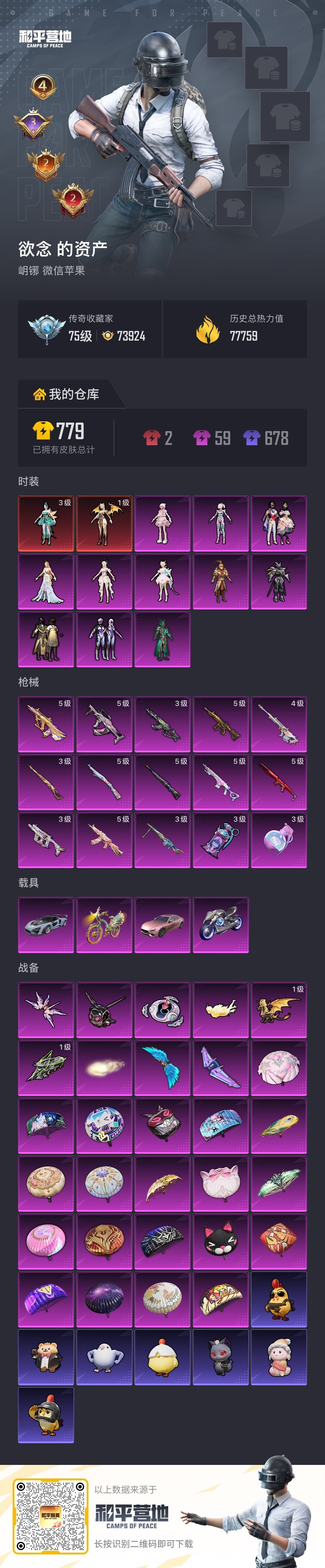 苹果WX-社交介意勿拍!!连体和平!V10-129英雄-513皮肤-9典藏皮肤-1典藏英雄-1珍品无双-5无双-5珍品传说-75传说-167史诗-10星元-60按键-6天幕