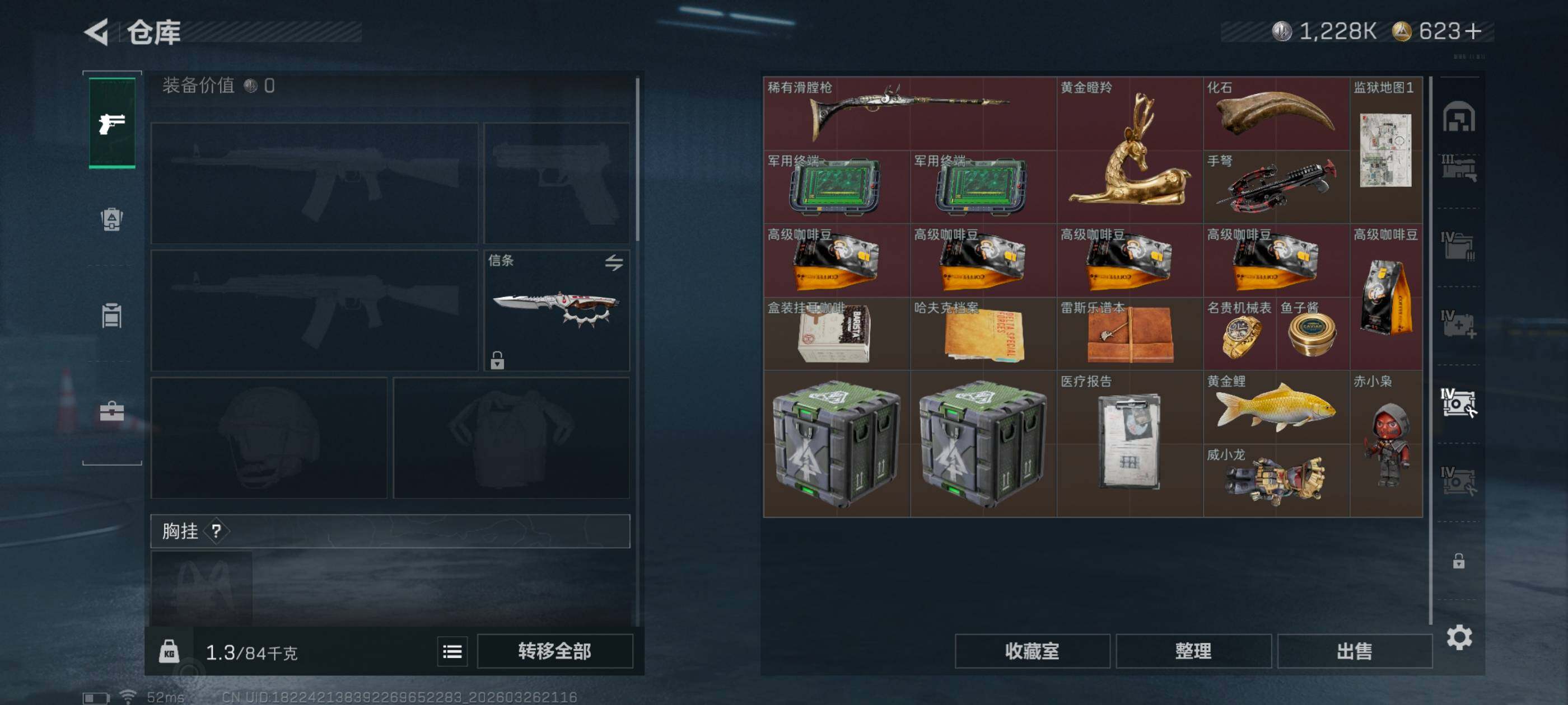 总资产(M):129M/哈夫币(K):1228K/