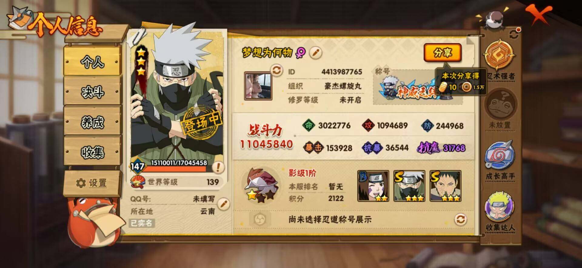 【S级忍者】:波风水门「秽土转生」(3星波风水门「秽土转生」),千手柱间「秽土转生」(3星千手柱间「秽土转生」),宇智波鼬「秽土转生」(3星宇智波鼬「秽土转生」),宇智波斑「秽土转生」(3星宇智波斑「秽土转生」),宇智波斑「秽土转生·解」(3星宇智波斑「秽土转生·解」),宇智波带土「忍界大战」(3星宇智波带土「忍界大战」),旗木卡卡西「须佐能乎」(3星旗木卡卡西「须佐能乎」),自来也「舞之豪杰」(3星自
