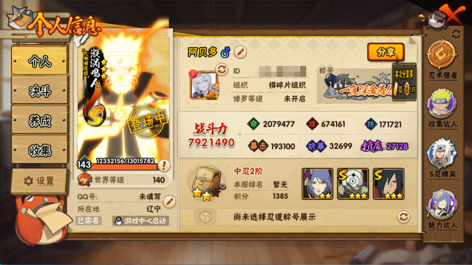 (可转苹果)792W战力白面植物人六尾15S+298点券鸡翅