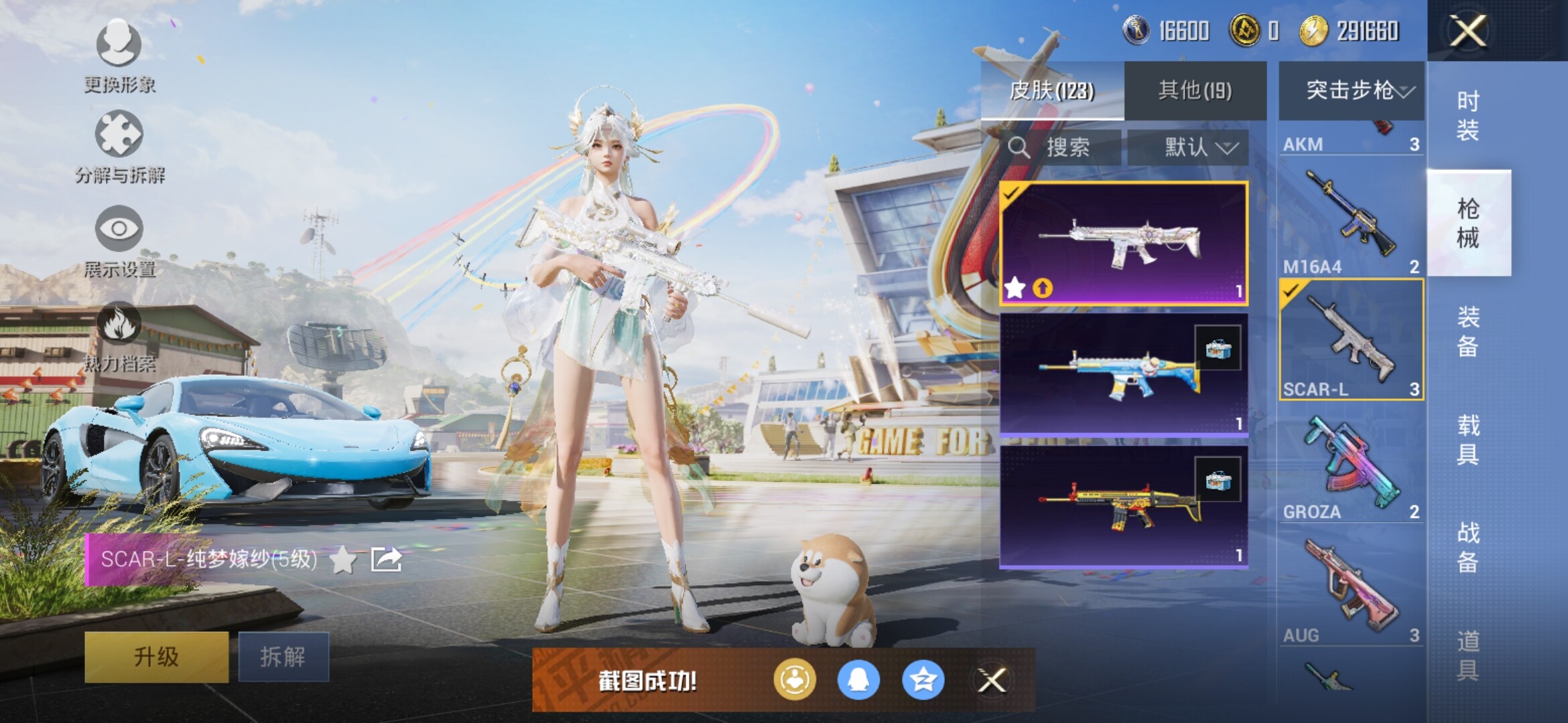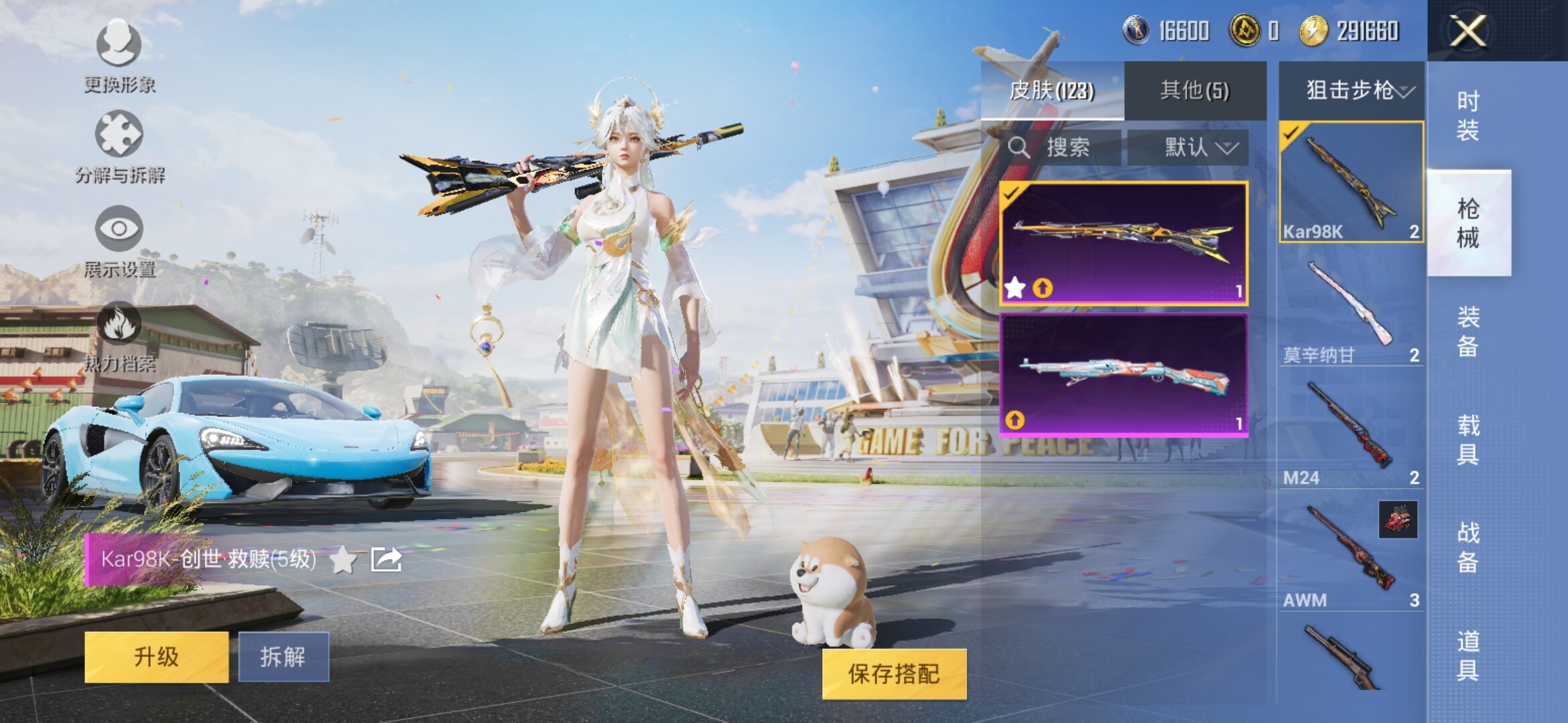 【特效枪等级】:SCAR-L-纯梦嫁纱(五级SCAR-L-纯梦嫁纱),M416-电玩时刻(五级M416-电玩时刻),UMP45-量子极限(五级UMP45-量子极限),Kar98K-创世·救赎(五级Kar98K-创世·