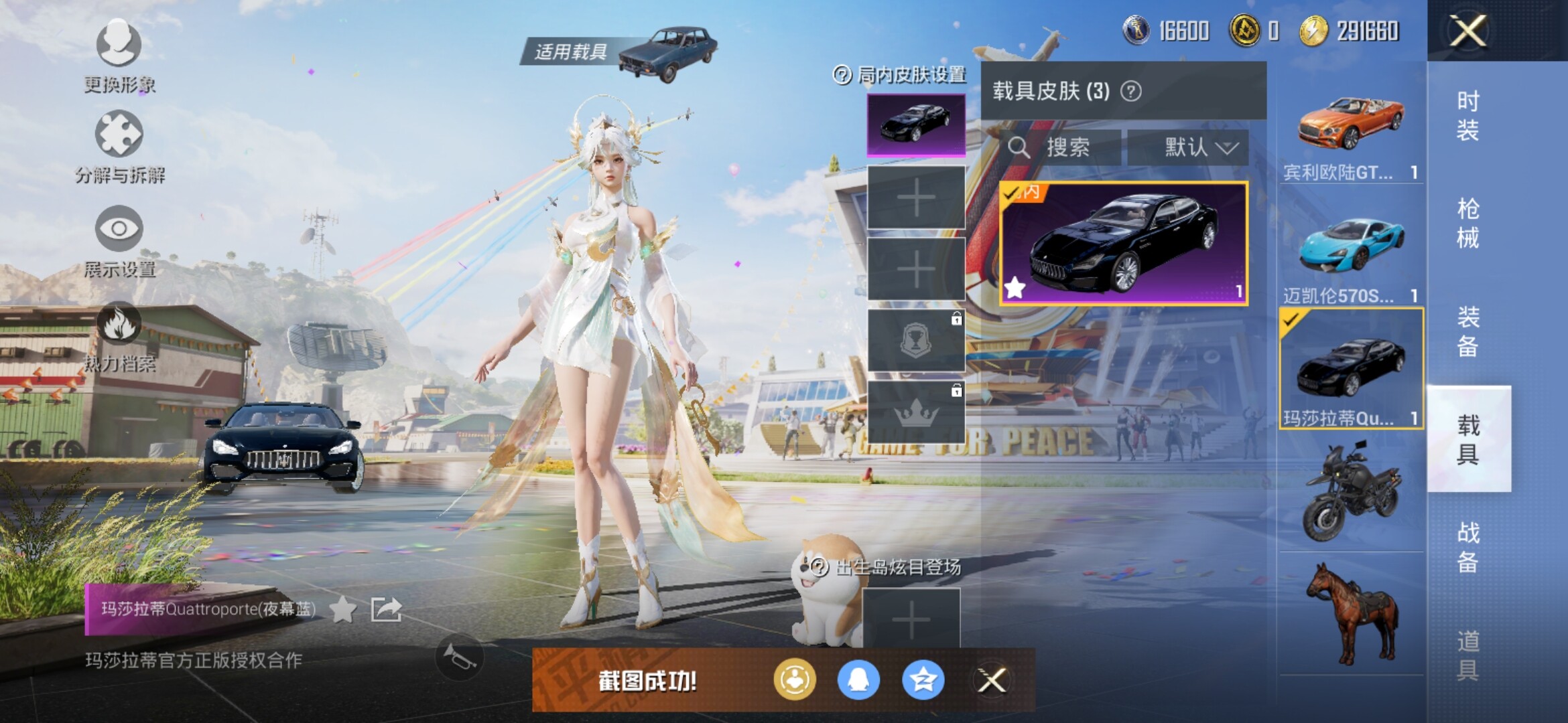 【7粉装-6特效枪 玛莎拉蒂 迈凯伦570S 宾利欧陆GT敞篷(上号需要实名qq)】:安卓 手Q-7粉装-6特效枪-3载具-42704热力值-0印记-76套装-123枪皮