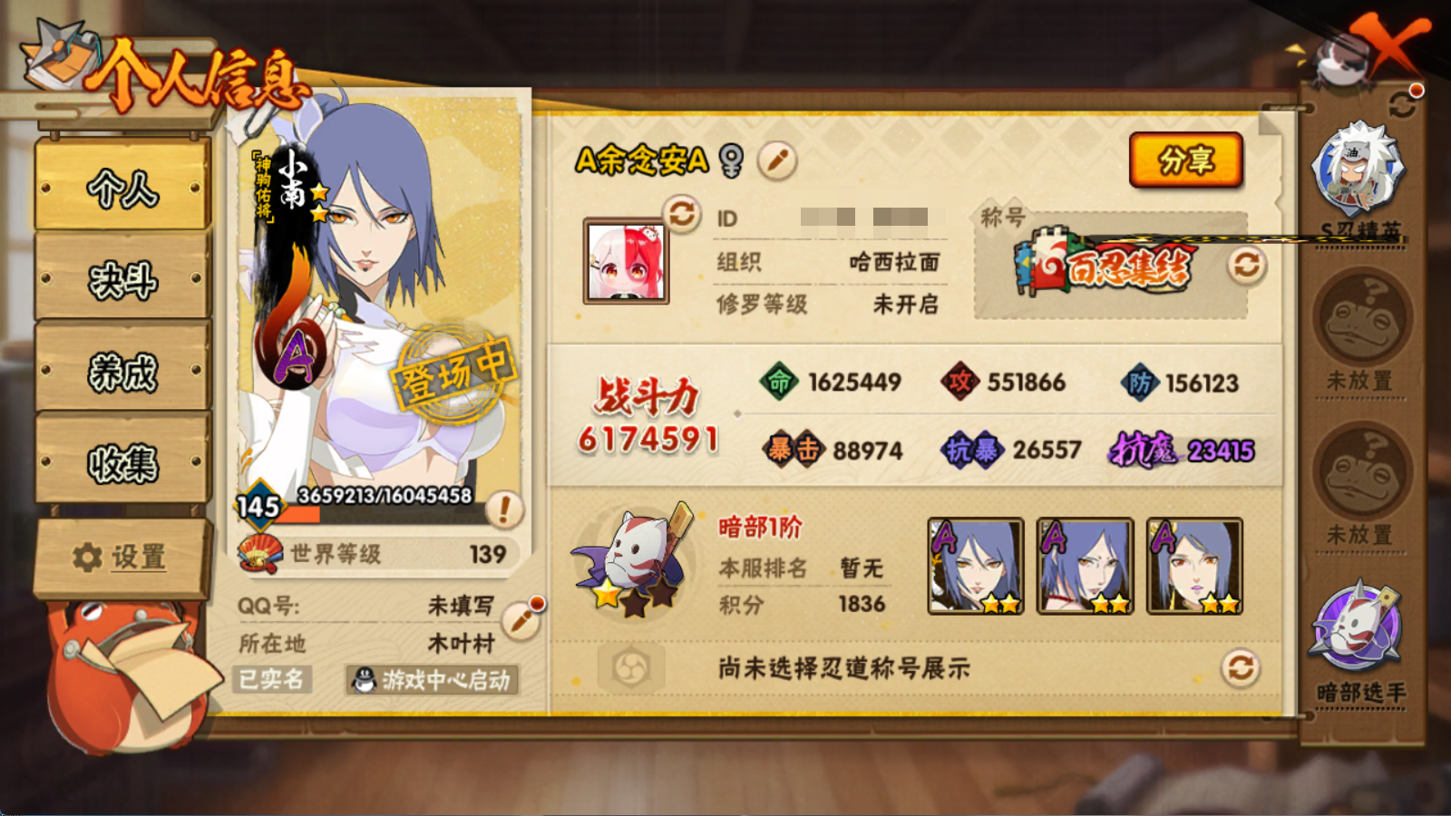 (可转苹果)617W战力 红夜带土 紫狗 黄猿14S+面麻 漂泊小南3个198直购31A+神驹小南紫皮