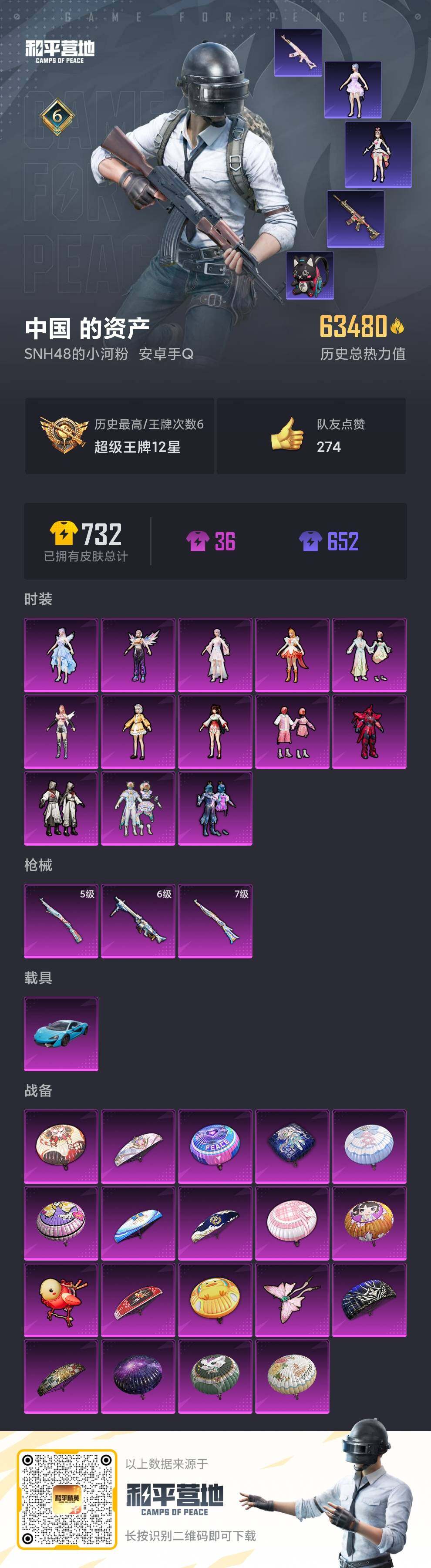 【超多小裙子 漂亮妹妹号 两把满级枪 9张改名卡】:安卓 手Q-13粉装-3特效枪-1载具-63480热力值-6印记-133套装-196枪皮