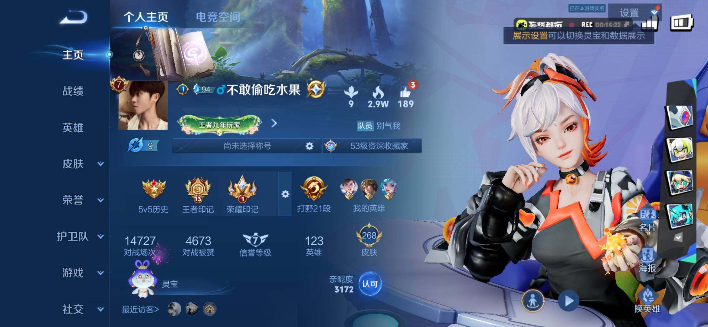 【鸣剑 10传说 268皮肤】:安卓Q-V7-最强王者段位-123英雄-268皮肤-1典藏-0无双-0珍品传说-10传说-60史诗