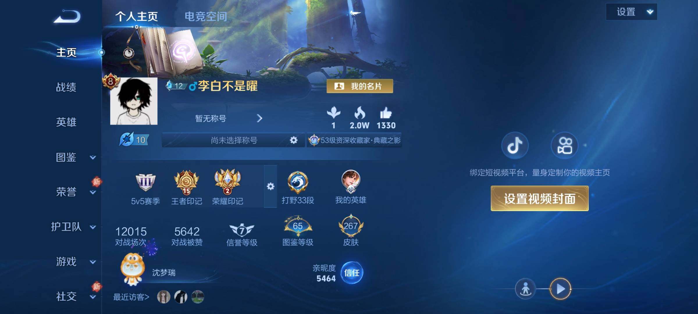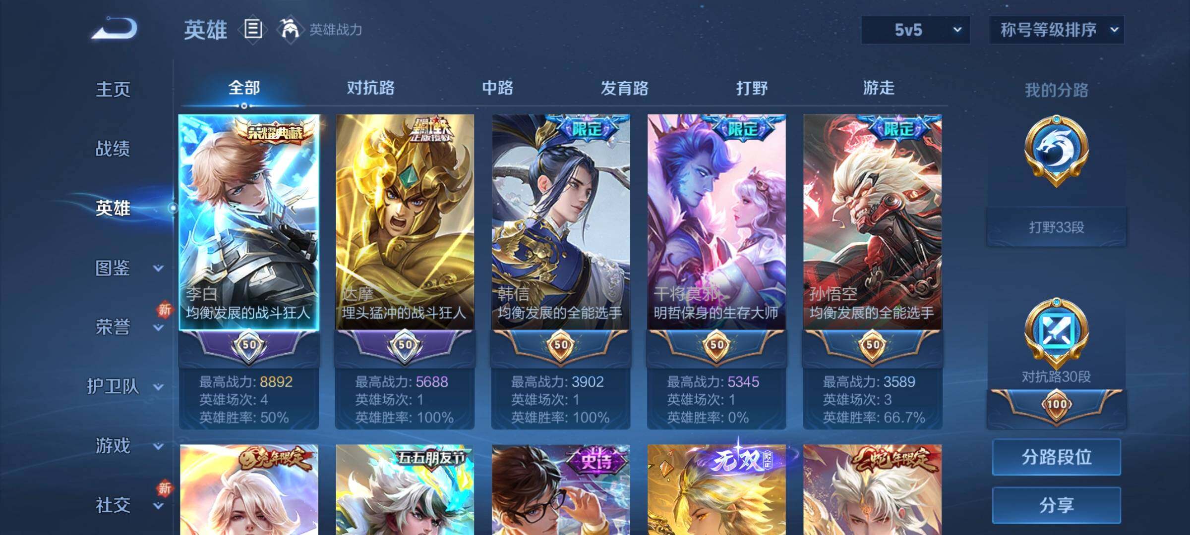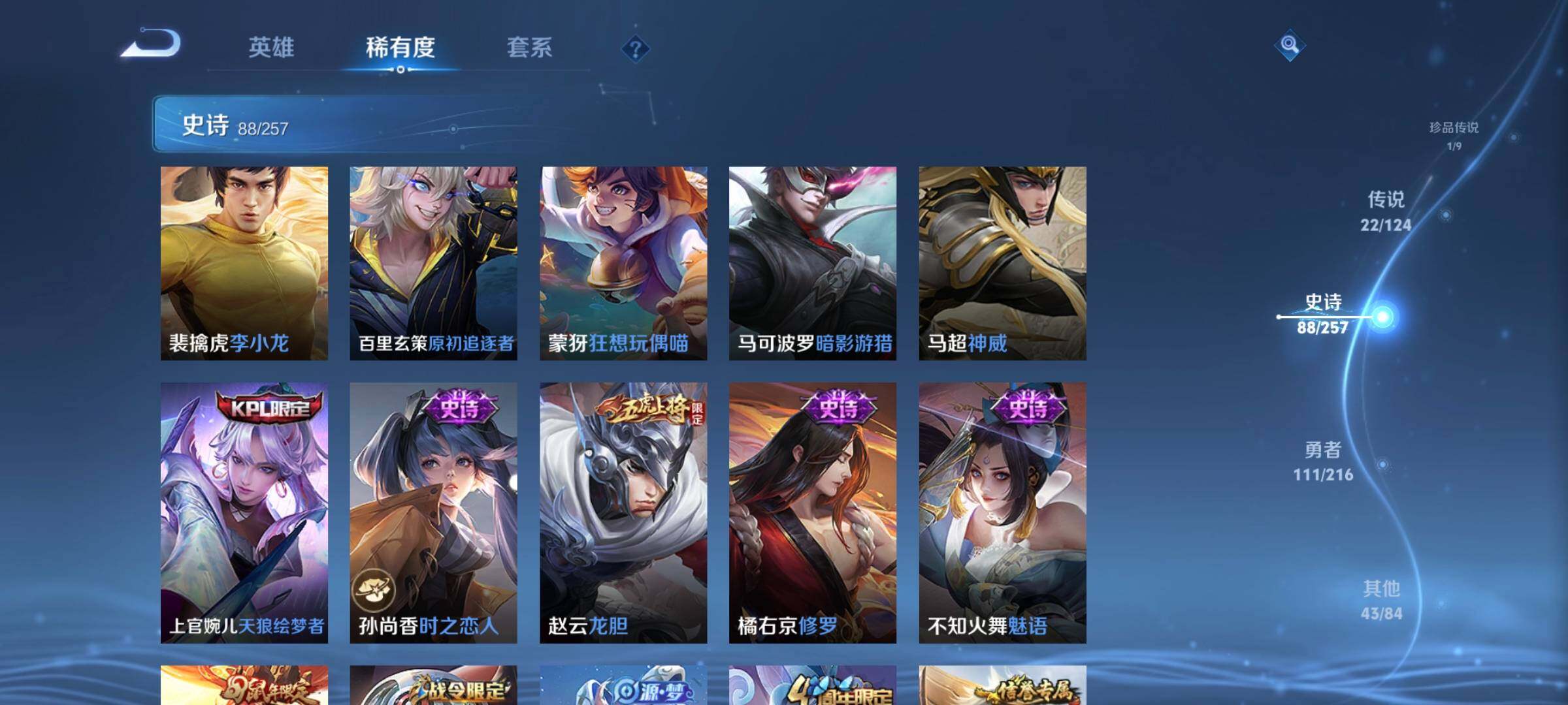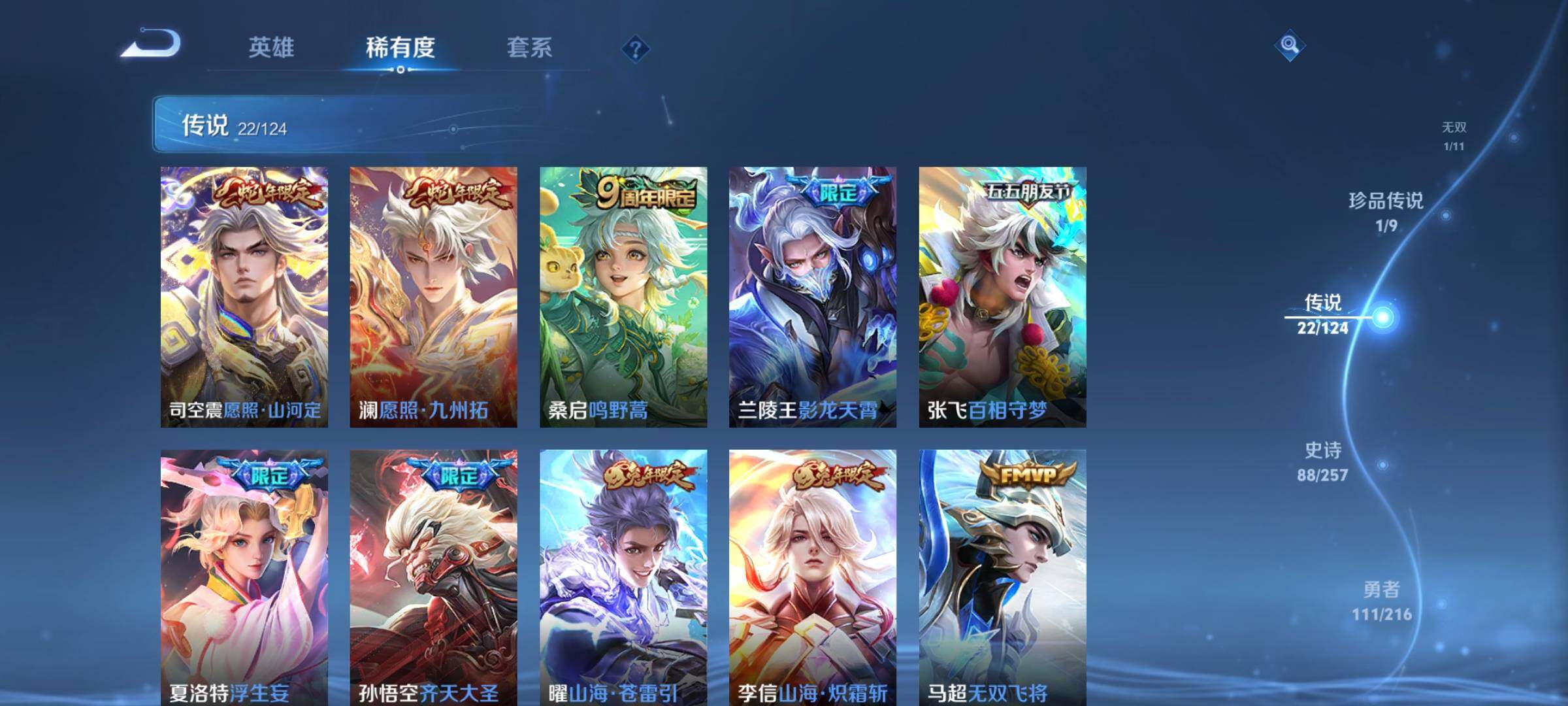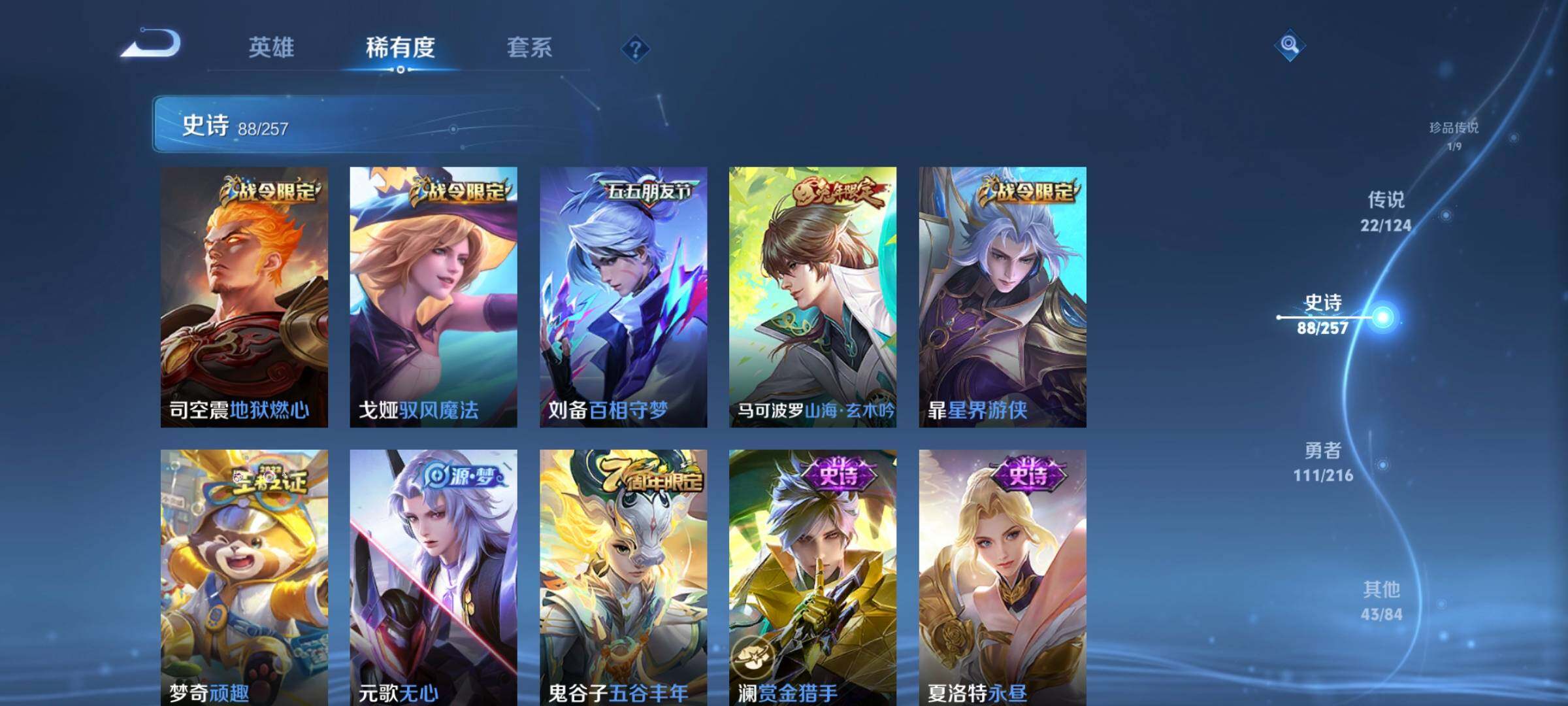 V8-永恒钻石III段位-123英雄-267皮肤-1典藏-0珍品无双-1无双-1珍品传说-22传说-88史诗