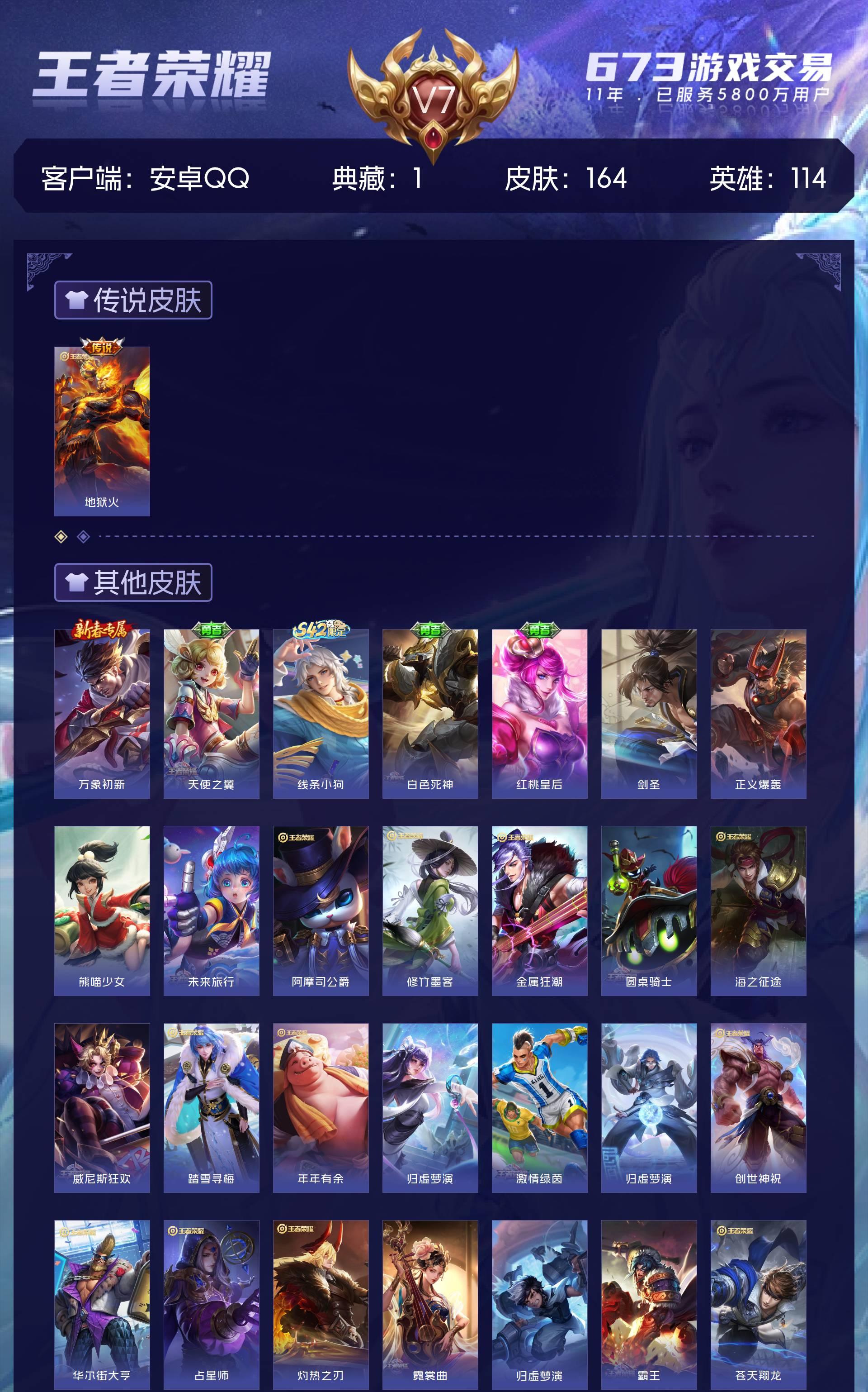 V7 皮肤164 英雄114 永恒钻石 荣耀典藏1 星传说1 传说1