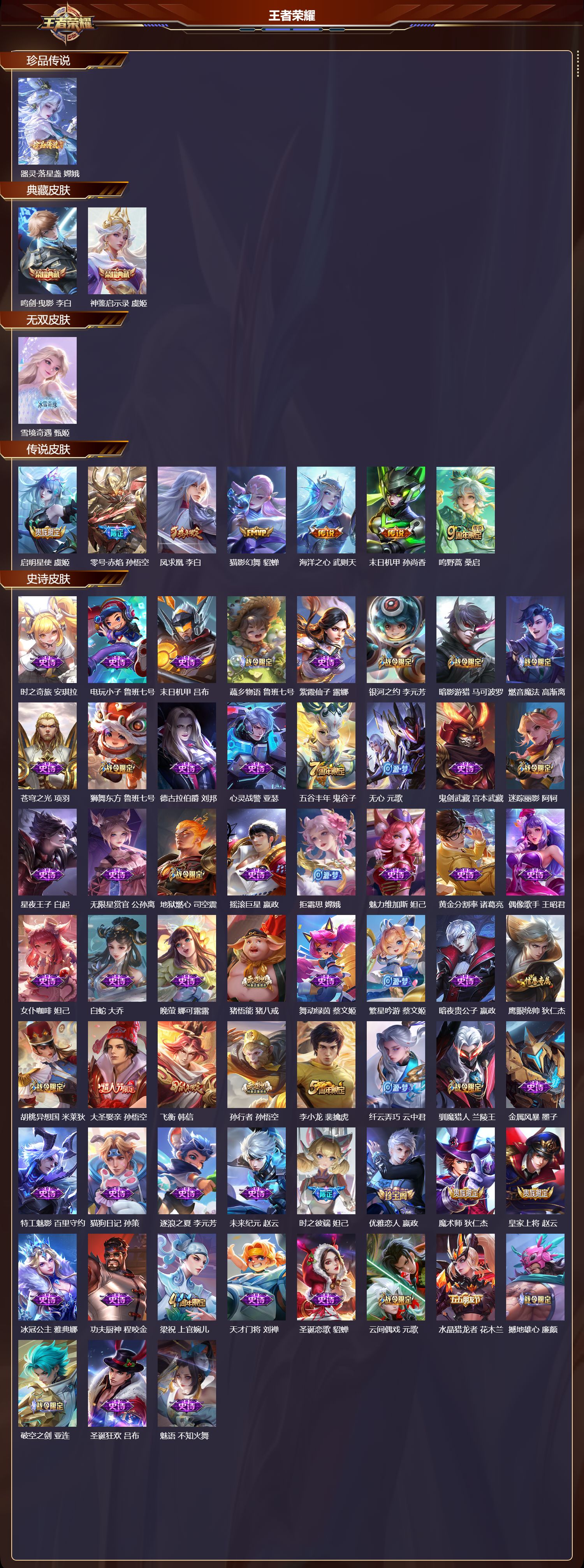 DB3688-果Q-可改实名可转区-V8-301皮肤-1星传说-2典藏-1无双-1珍品未来机甲 孙尚香-鸣剑曳影 李白-雪境奇遇 甄姬-启明星使 虞姬-零号赤焰 孙悟空-凤求凰 李白-猫影幻舞 貂蝉