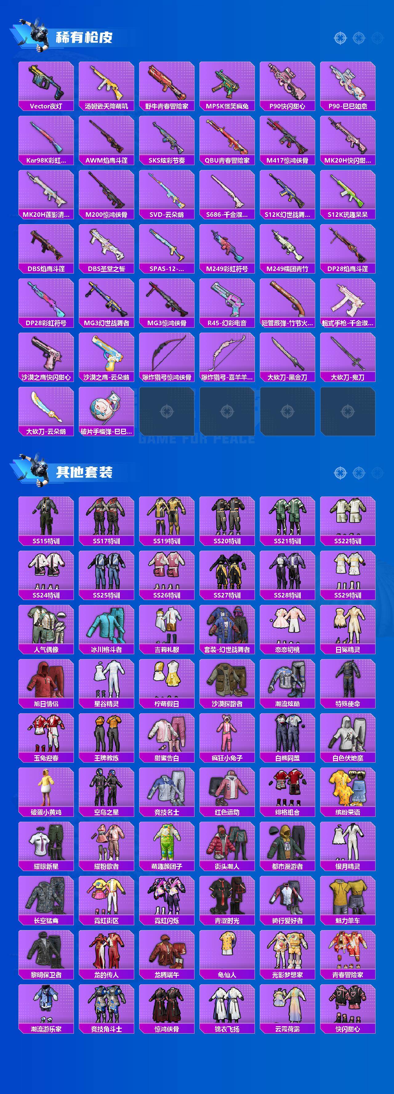 【粉色枪皮等级】:SCAR-L-锦绣绵绵(五级),M416-电玩时刻(五级),GROZA-镜光银凌(五级),M762-青锋波束(五级),Kar98K-巳巳如意