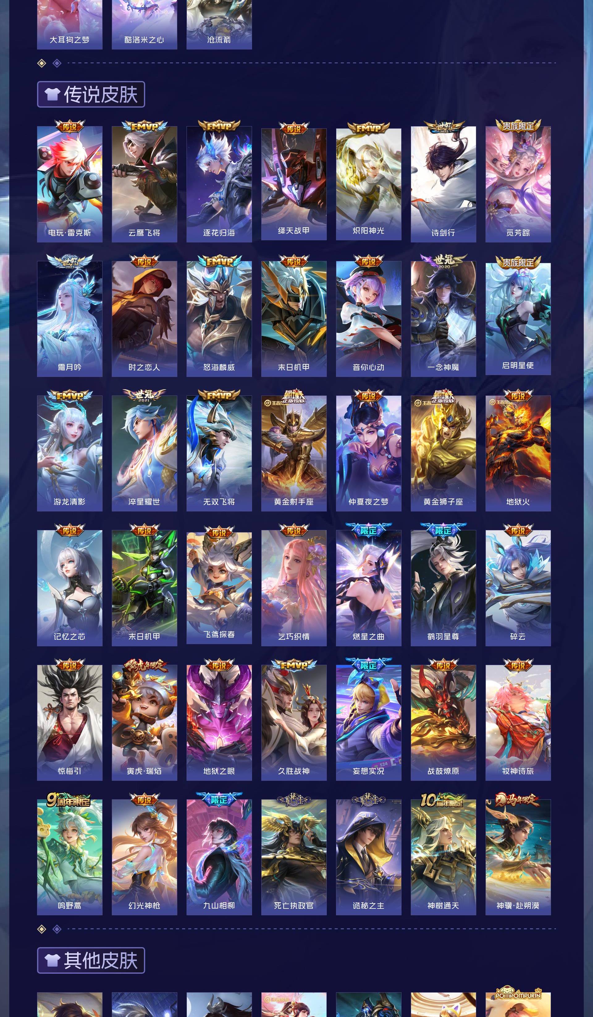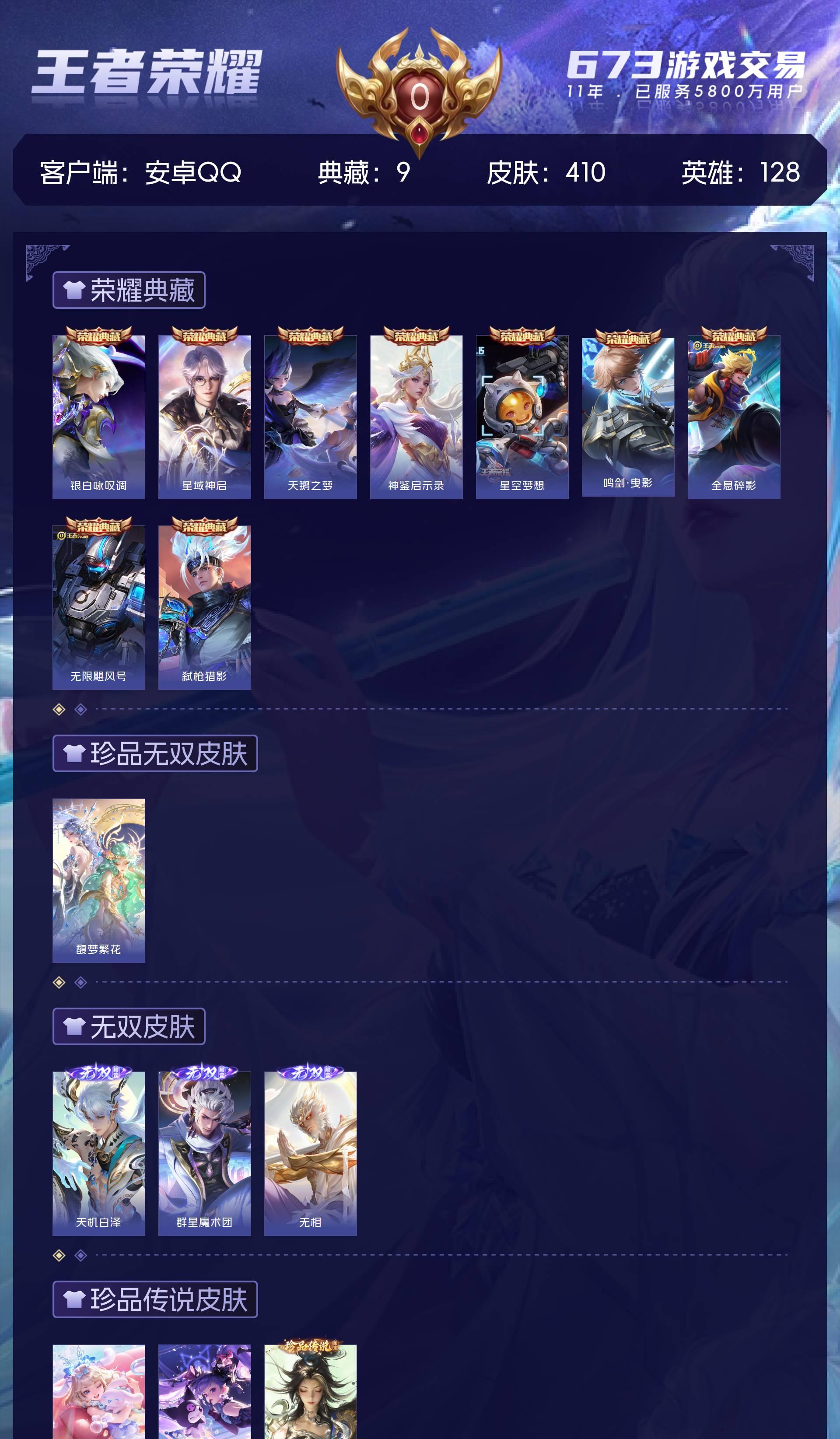 无双V10 皮肤410 英雄128 至圣王者 荣耀典藏9 珍品无双1 无双皮肤3 珍品传说3 传说43