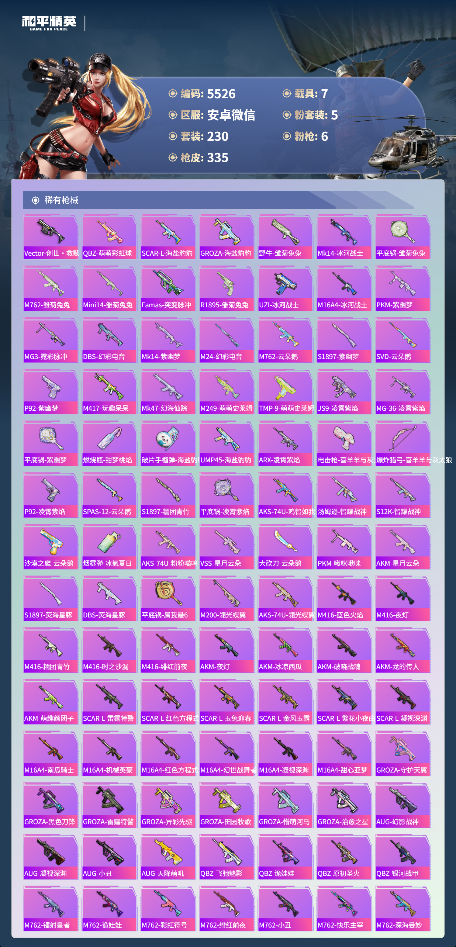 27印记-6绝世-2红装-5粉装-6特效枪-