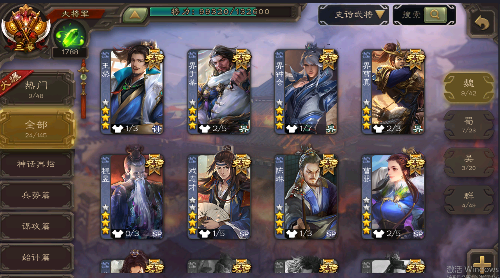 史诗武将数量: