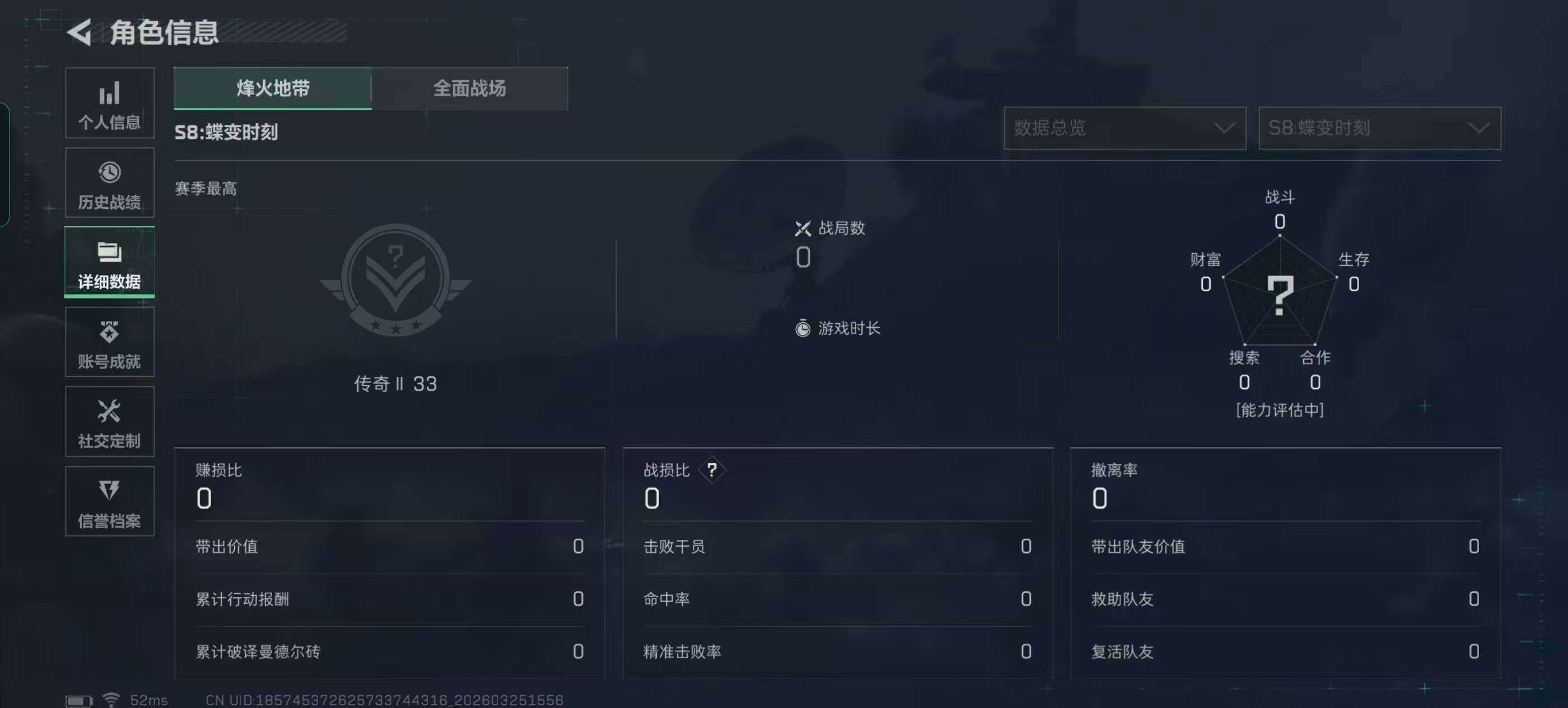 【SJ1536】270m总资产-33355k哈夫币-60烽火等级-青铜-1战场等级-无军衔