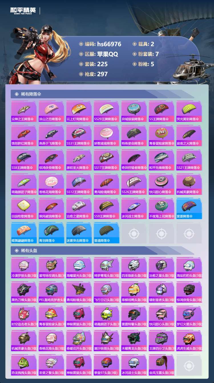 hs66976 苹果手Q-24王牌印记-7粉装-5特效枪-2载具-93067热力值-225套装-29