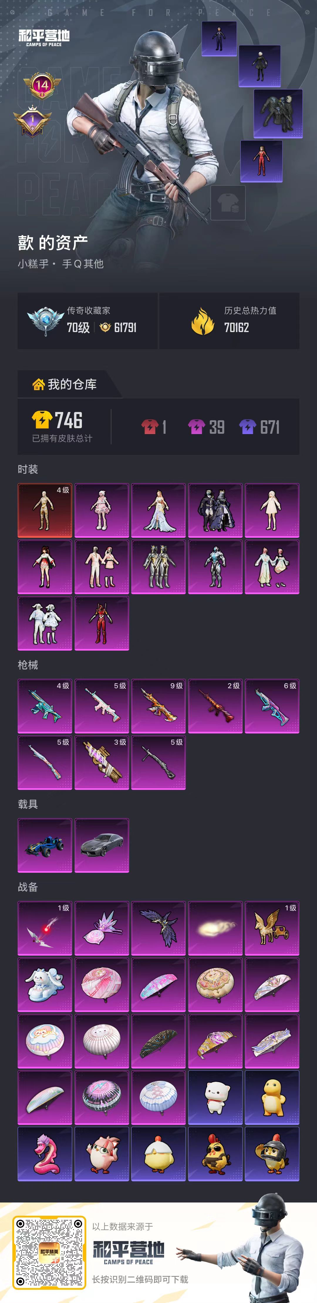 hs66913 安卓手Q-14王牌印记-1红装-11粉装-8特效枪-2载具-70197热力值-141