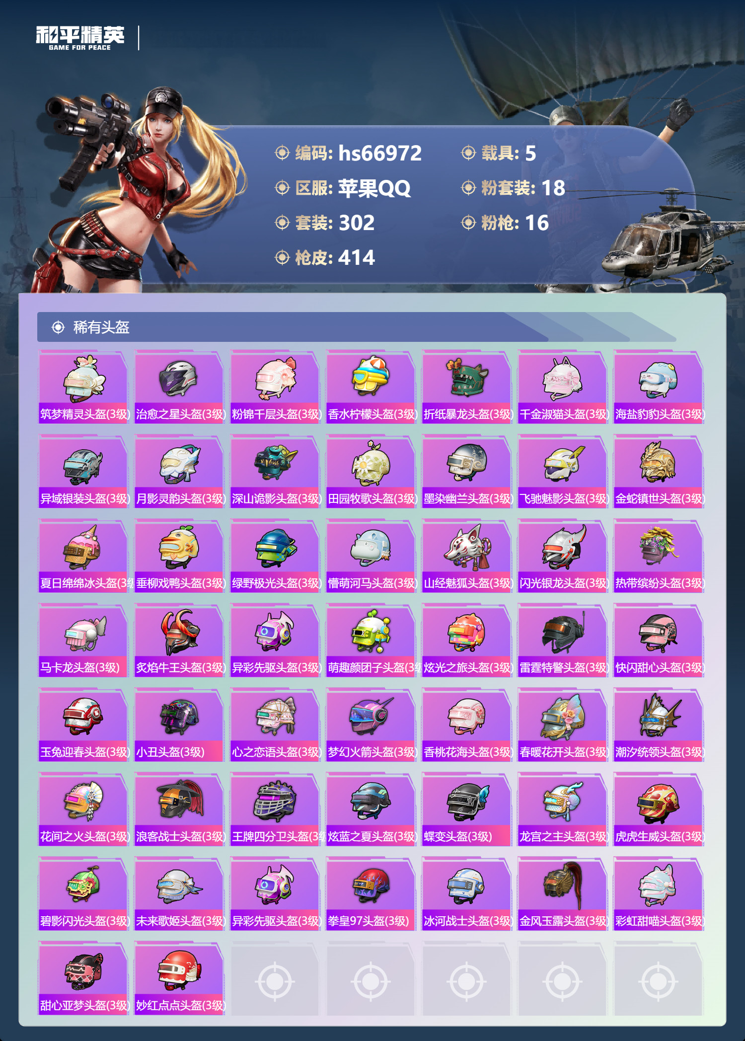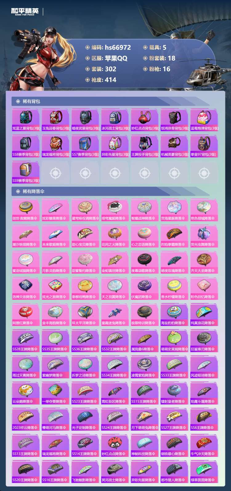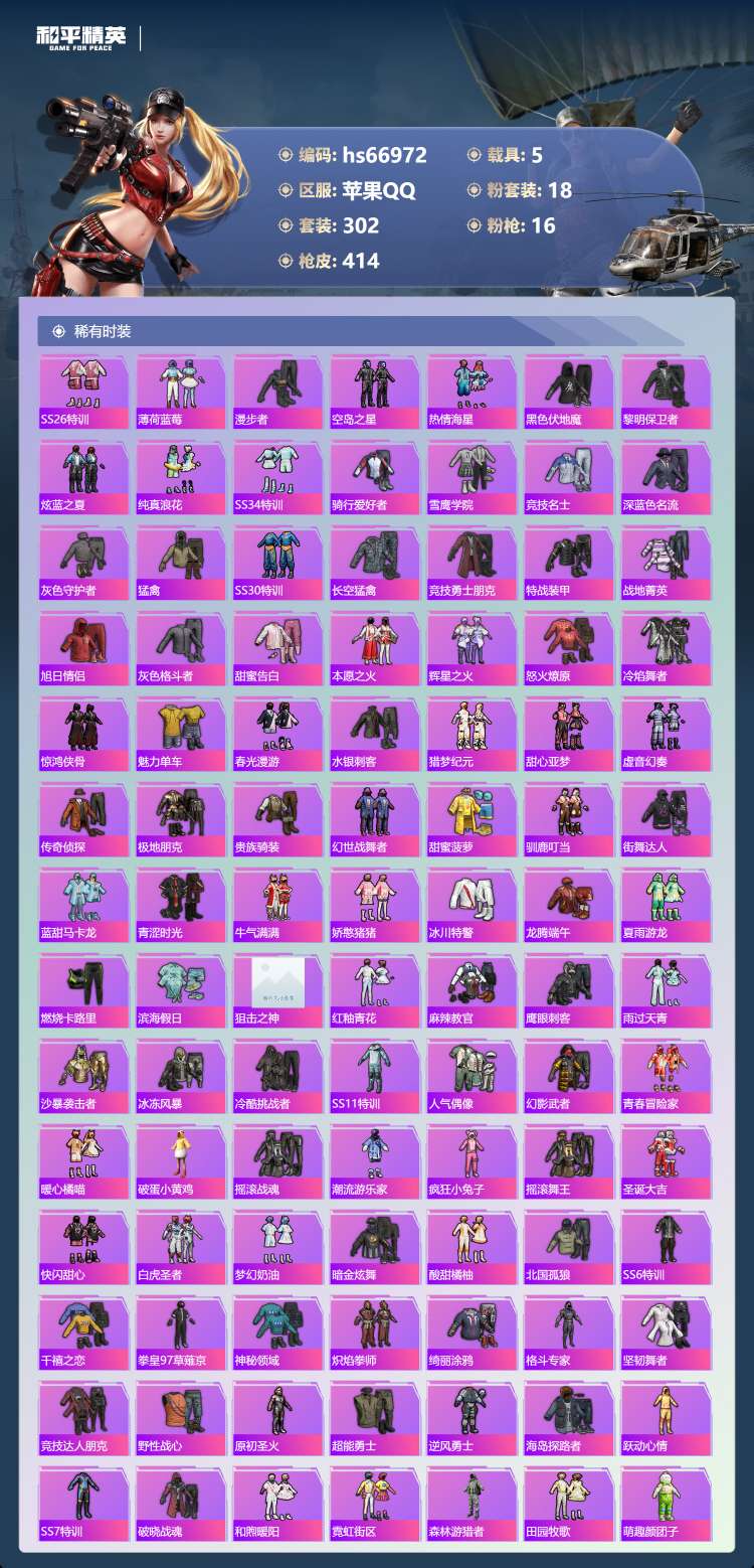 hs66972 苹果手Q-28王牌印记-有战神框-1红装-18粉装-16特效枪-5载具-151171