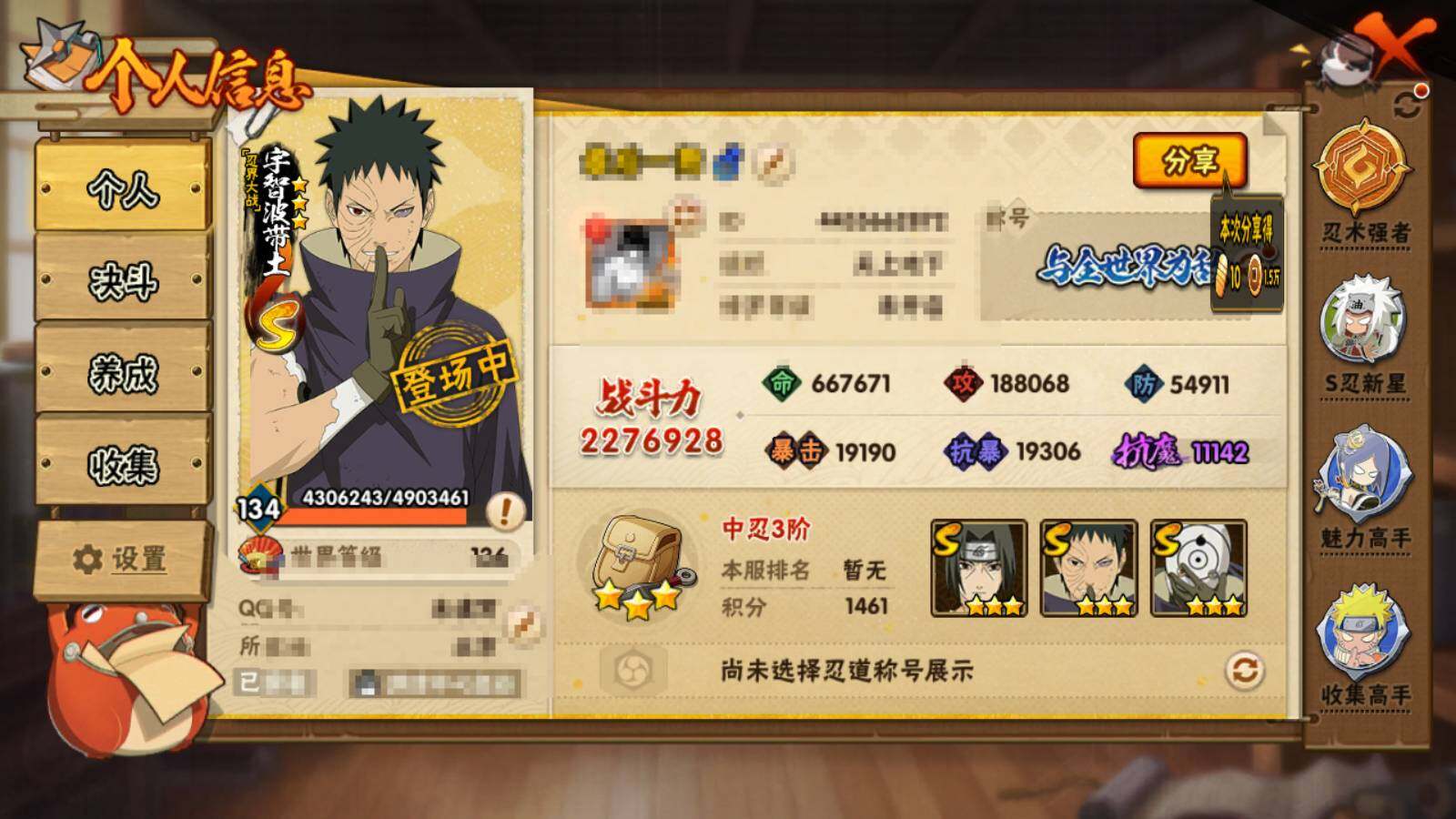 V6/战力227W/S忍8/A忍14/舞之豪杰-自来也/白面具