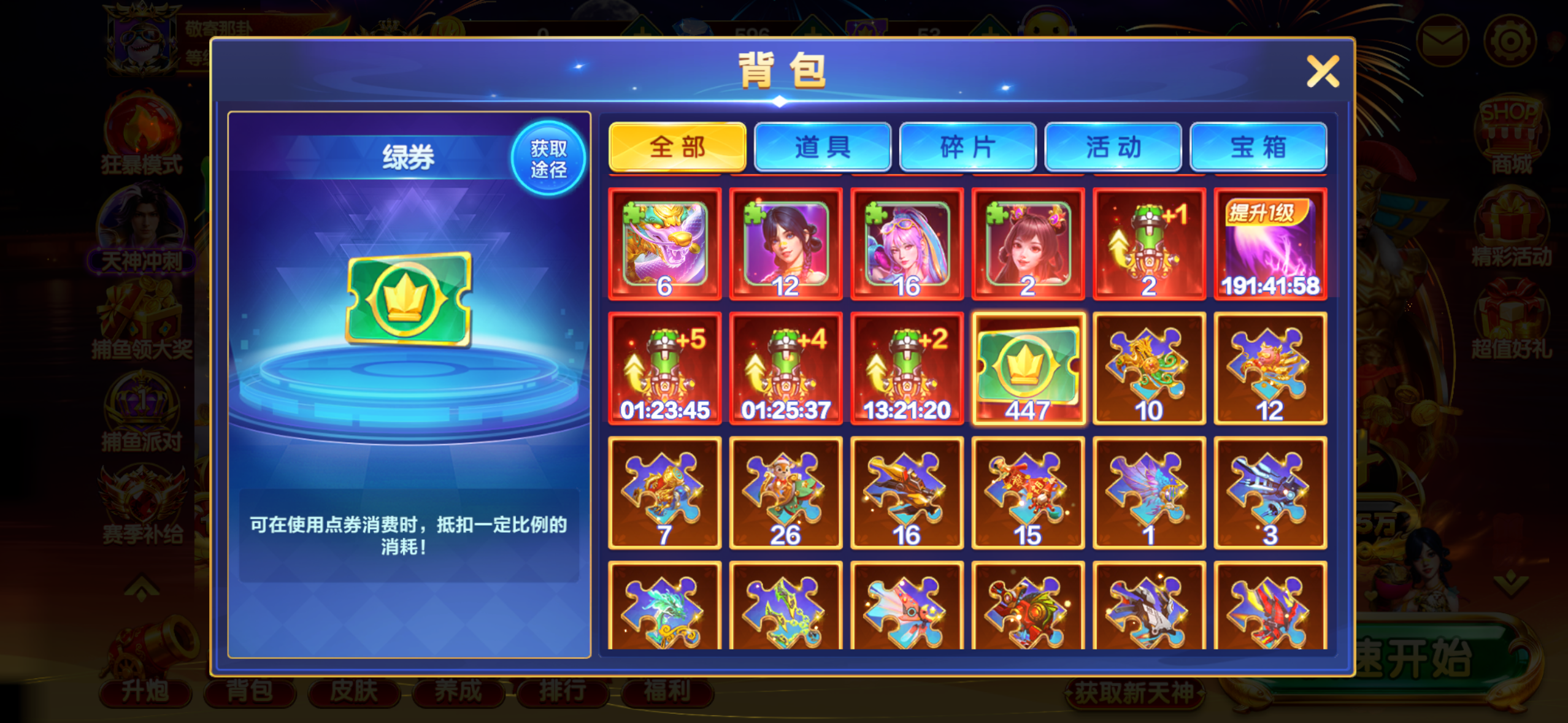 【捕鱼大咖神号】文字s6极品无限火力账号买断,70亿炮台