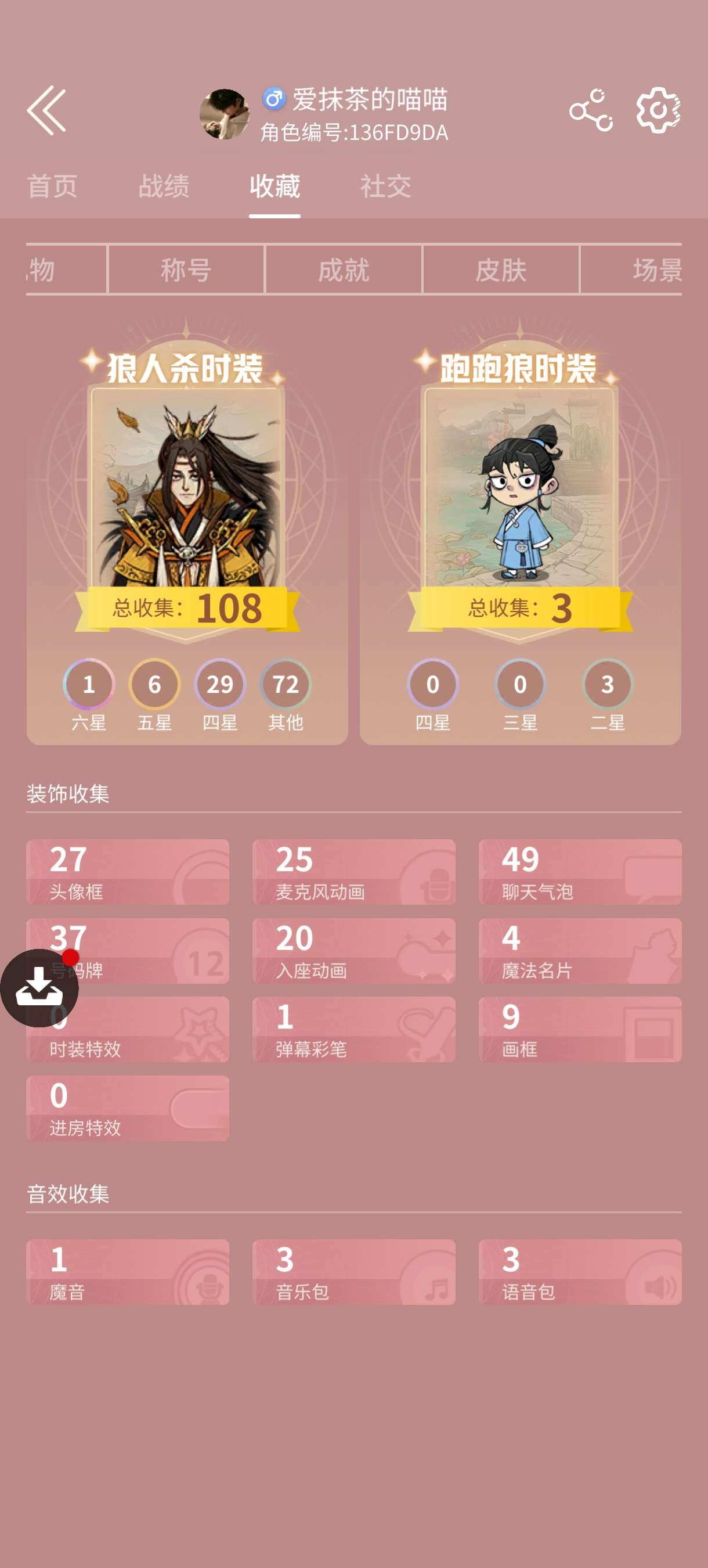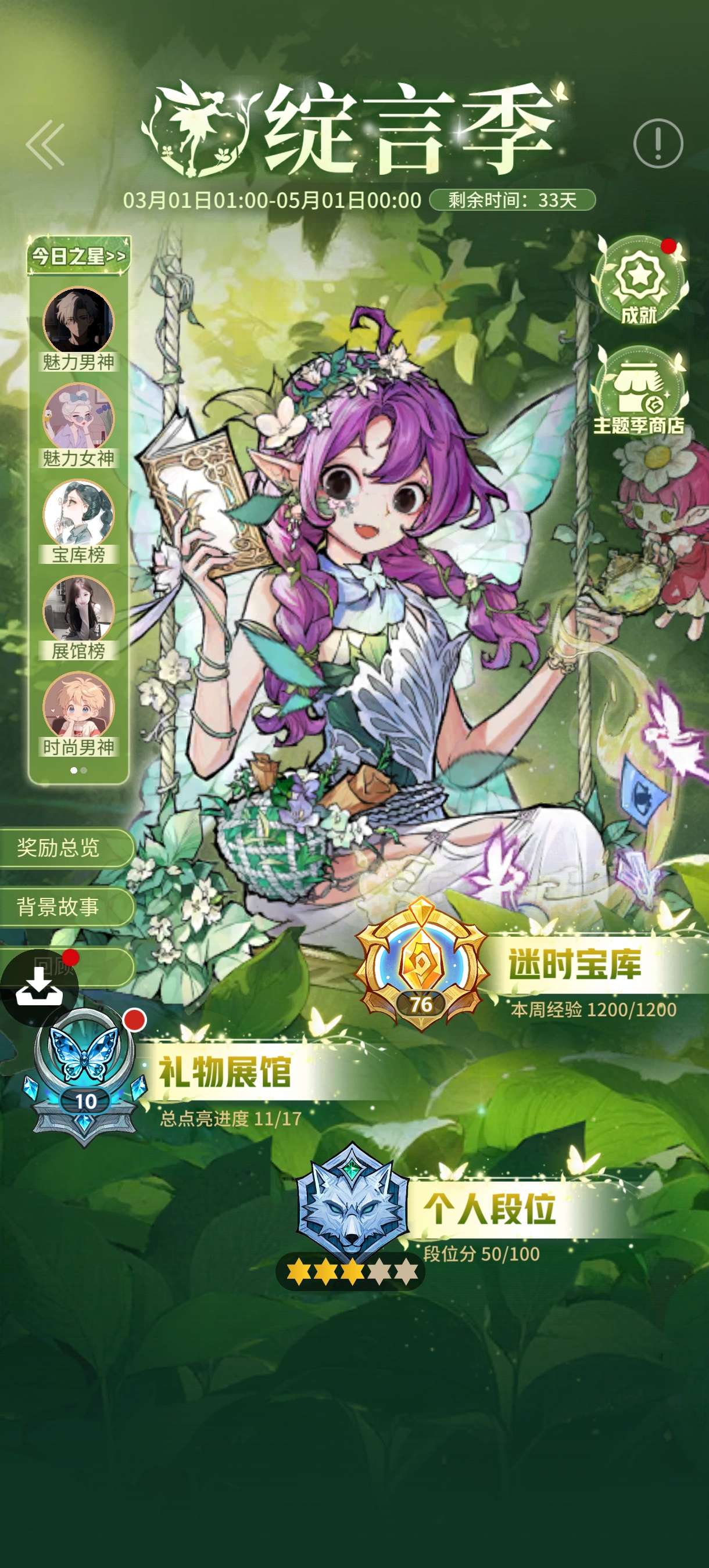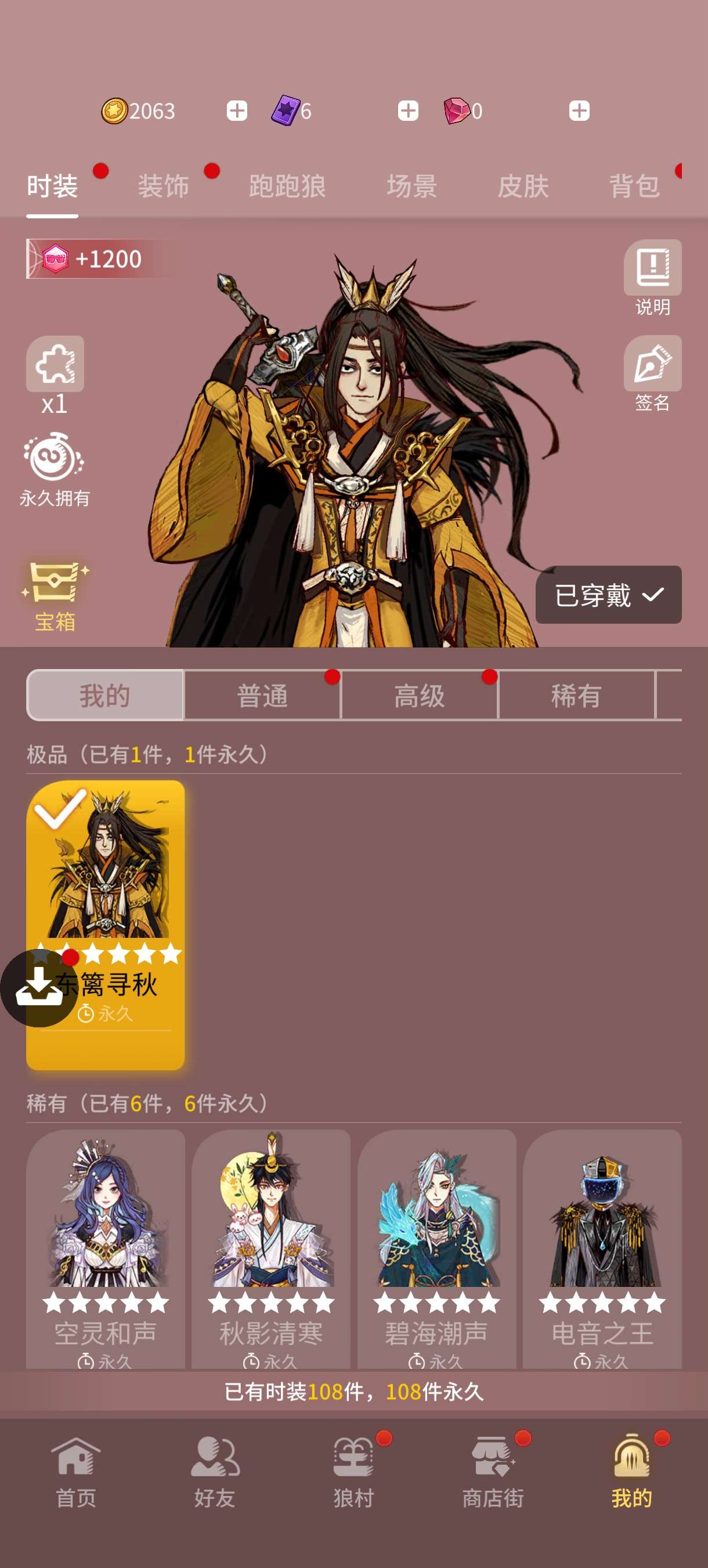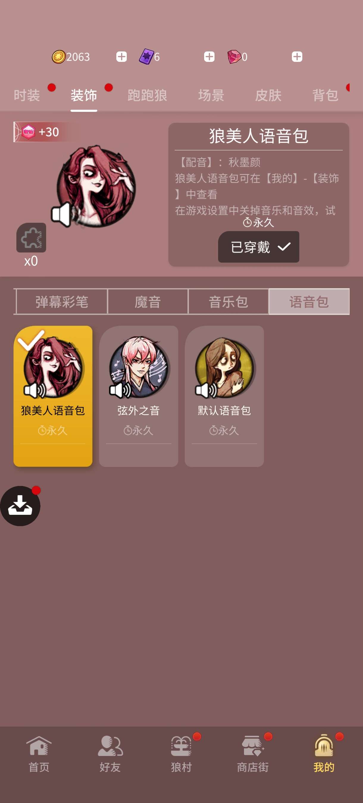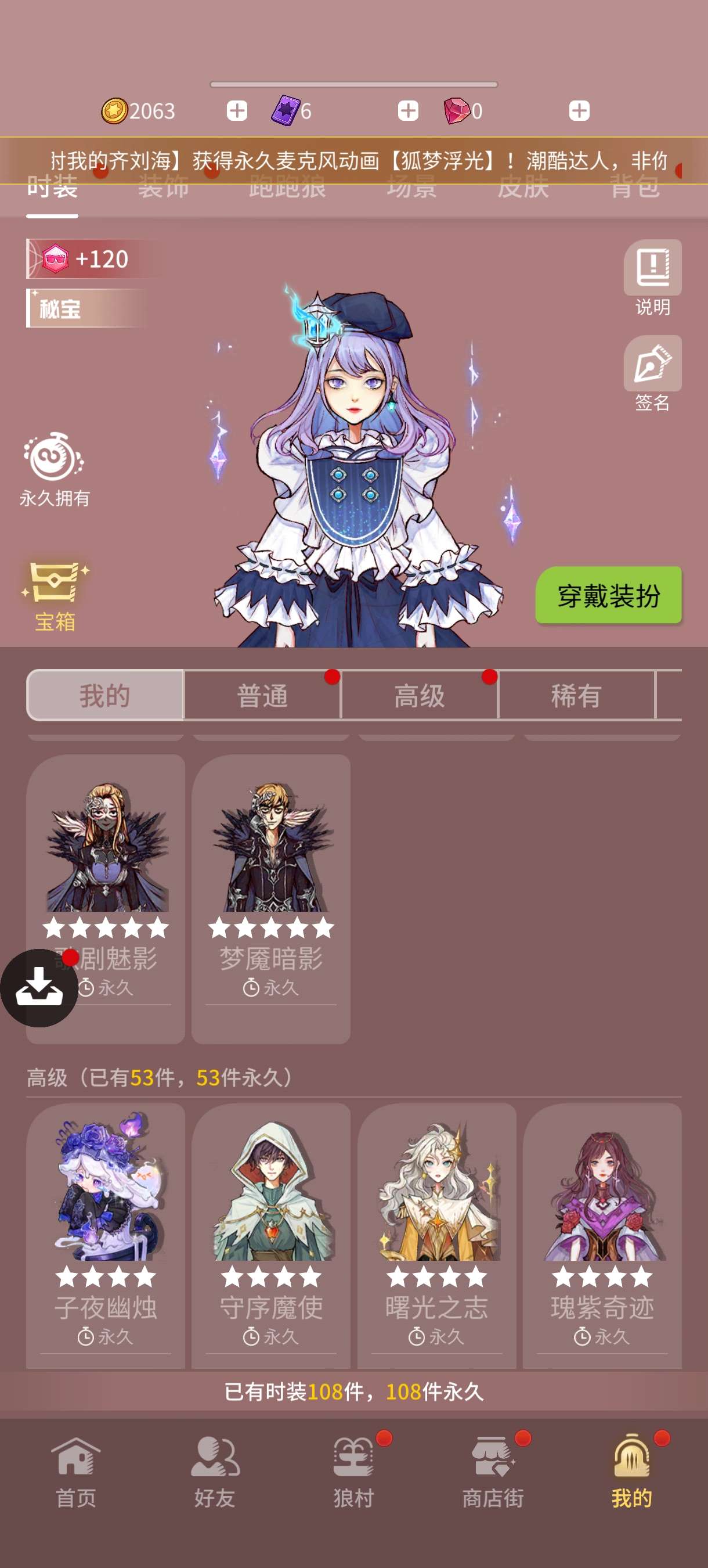 5阶5,六星,仙鹤名片,狼美人语音包,带首充改名卡,本赛季宝库已开,狼人杀