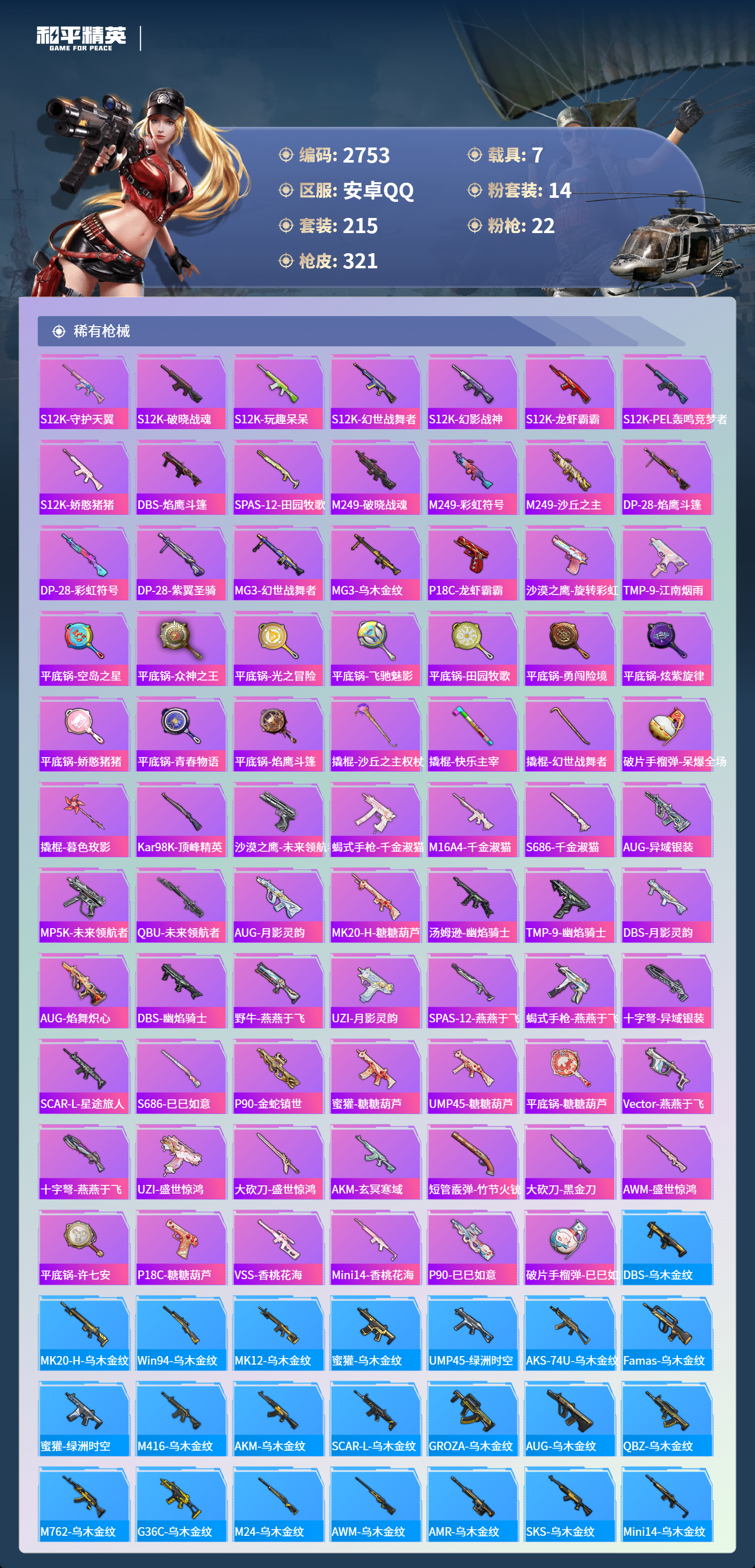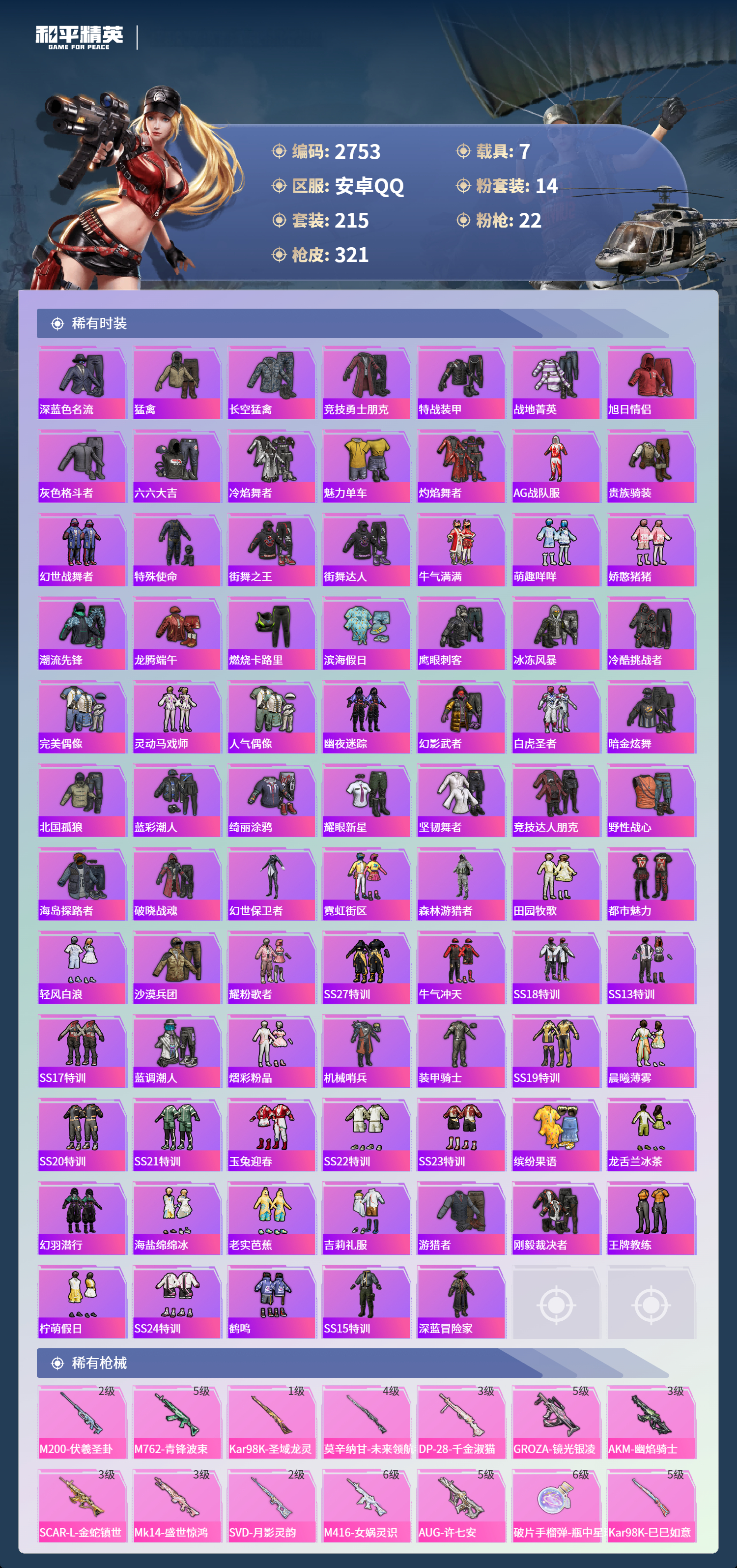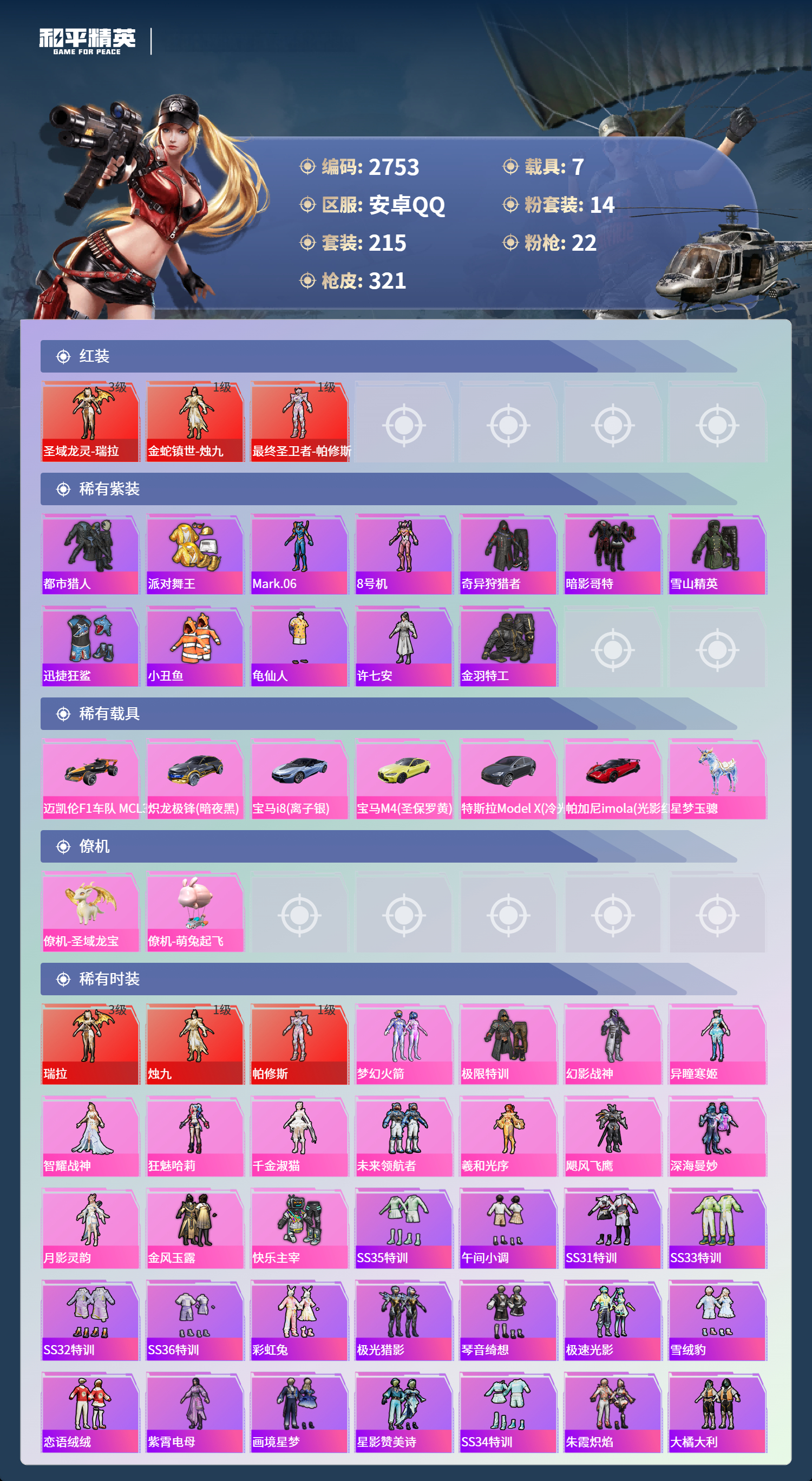 安卓Q区 不可改实名可转区 3红 14粉 22特 7载具 2僚机