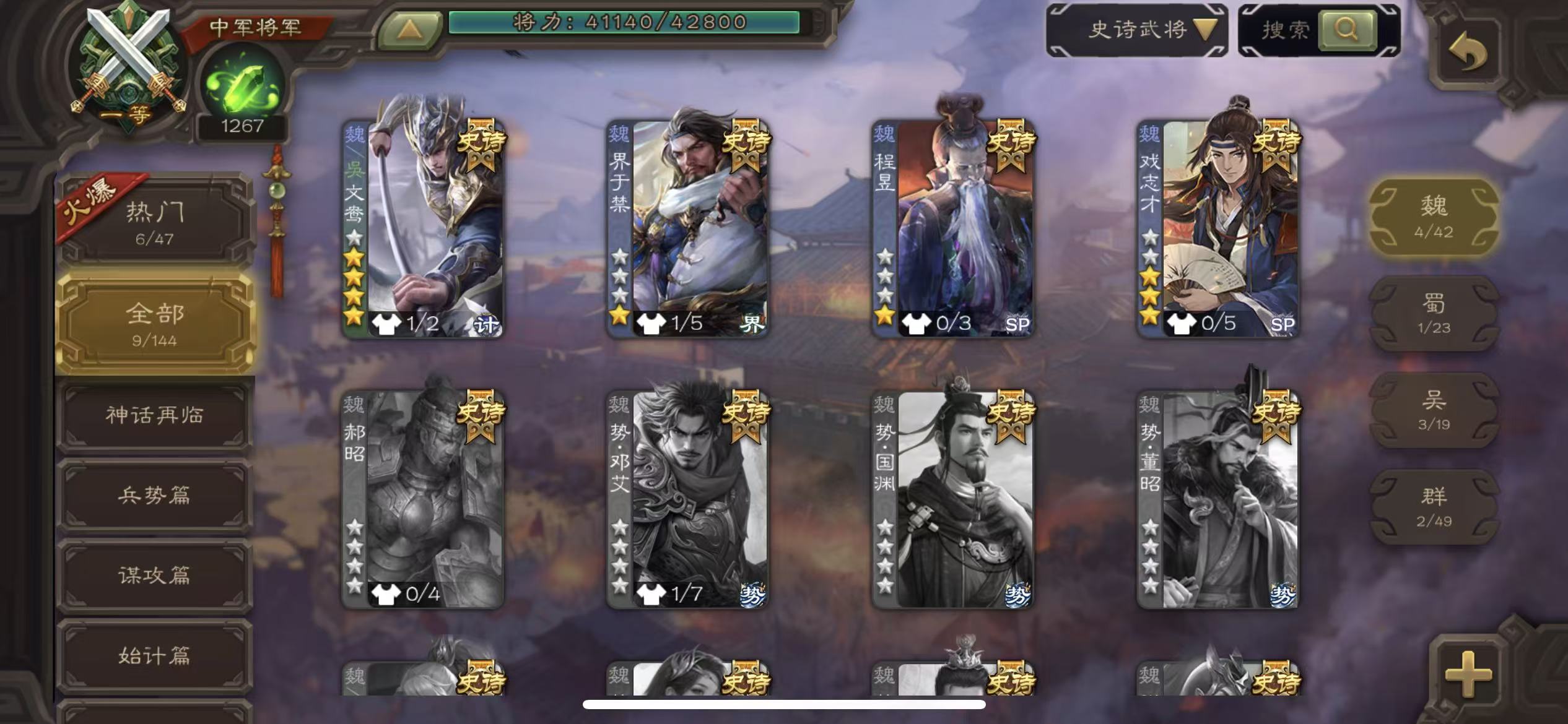 史诗武将数量: